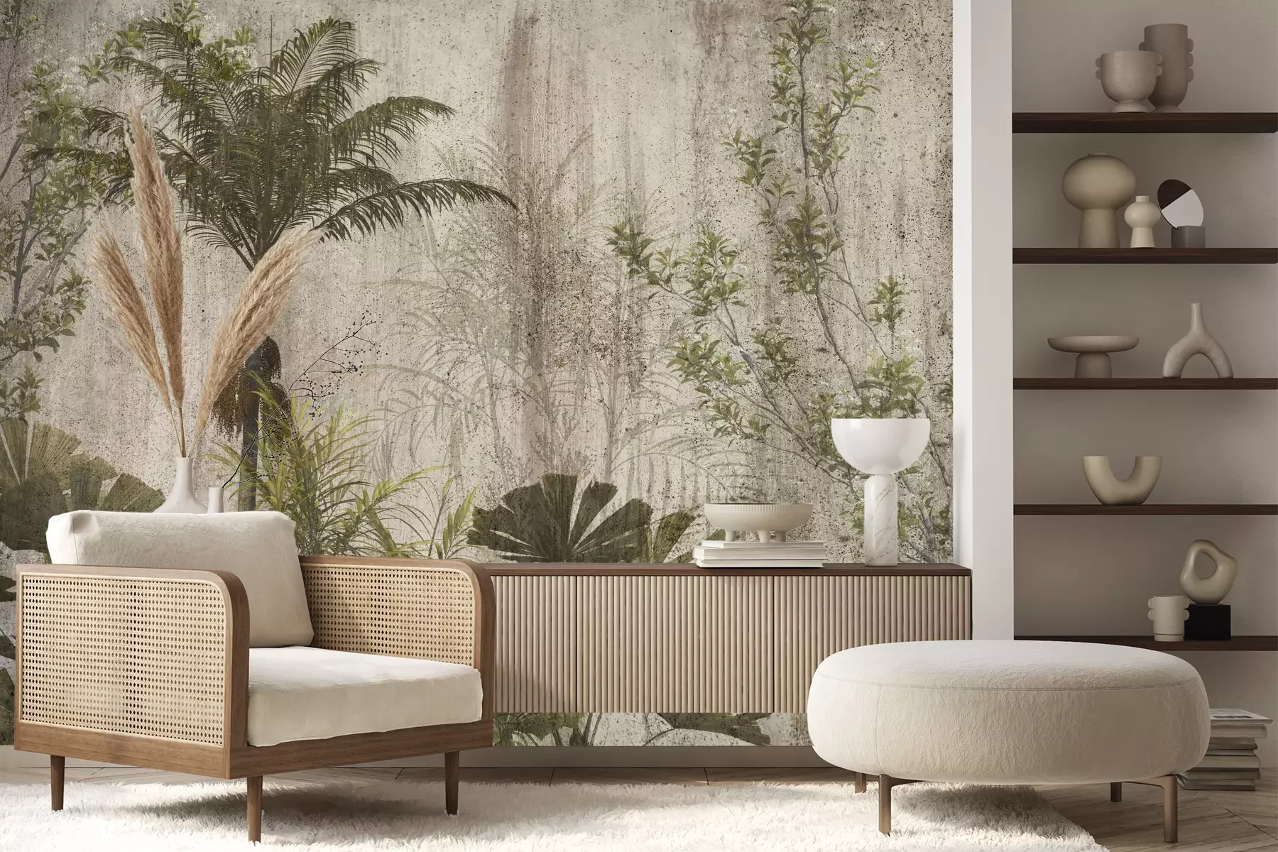 Het materiaal Premium+ is een gestructureerd vinyl op vlies met een gewicht van 255 g/m², dat kleine oneffenheden in de muur effectief camoufleert. De subtiele structuur van fijn zand geeft het oppervlak een exclusieve uitstraling, terwijl de halfmatte afwerking de diepte van de kleuren benadrukt. Het materiaal is dampdoorlatend, waardoor het ook in de keuken en badkamer kan worden gebruikt. De maximale breedte van één baan bedraagt 100 cm – bij grotere afmetingen wordt het fotobehang in meerdere gelijke banen verdeeld. De lijm wordt direct op de muur aangebracht en het behang wordt rand-aan-rand geplakt, wat zorgt voor een esthetisch resultaat zonder zichtbare naden. Het oppervlak kan gemakkelijk worden schoongemaakt door het voorzichtig af te nemen met een vochtige doek.
