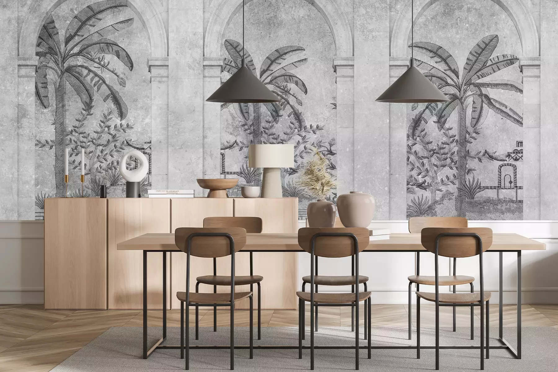 Het materiaal Premium+ is een gestructureerd vinyl op vlies met een gewicht van 255 g/m², dat kleine oneffenheden in de muur effectief camoufleert. De subtiele structuur van fijn zand geeft het oppervlak een exclusieve uitstraling, terwijl de halfmatte afwerking de diepte van de kleuren benadrukt. Het materiaal is dampdoorlatend, waardoor het ook in de keuken en badkamer kan worden gebruikt. De maximale breedte van één baan bedraagt 100 cm – bij grotere afmetingen wordt het fotobehang in meerdere gelijke banen verdeeld. De lijm wordt direct op de muur aangebracht en het behang wordt rand-aan-rand geplakt, wat zorgt voor een esthetisch resultaat zonder zichtbare naden. Het oppervlak kan gemakkelijk worden schoongemaakt door het voorzichtig af te nemen met een vochtige doek.