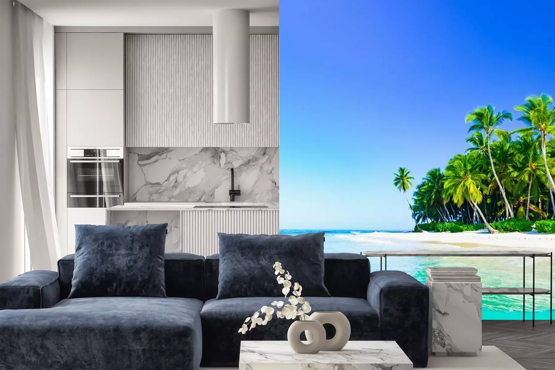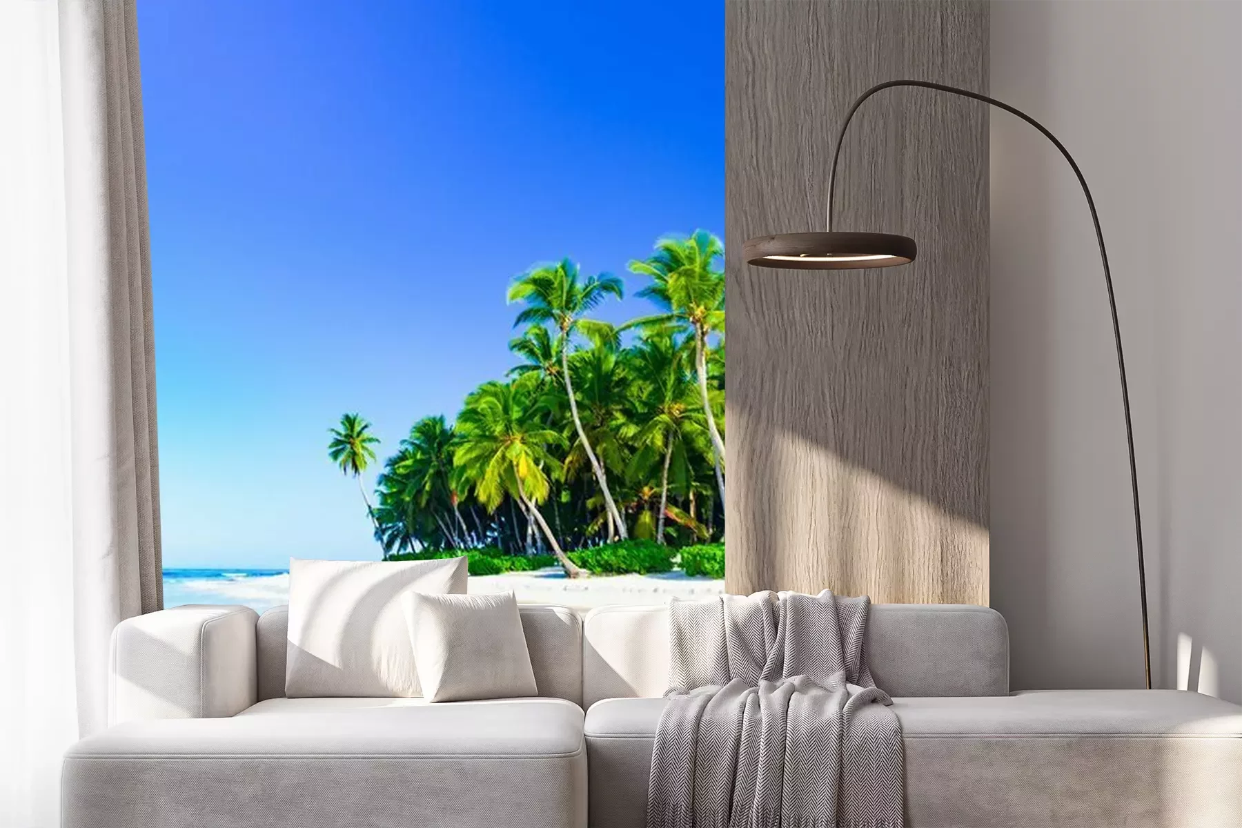 open raam uitzicht op de zee goed weer zomerFotobehang