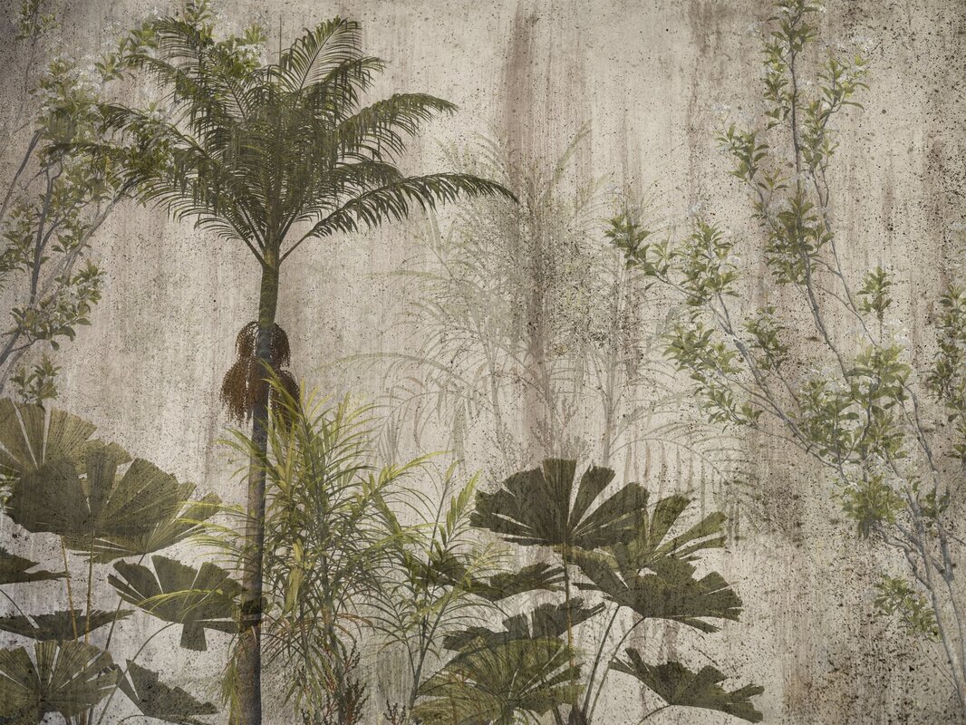 Fotobehang: Palmbomen op een gestructureerde achtergrond met betoneffect