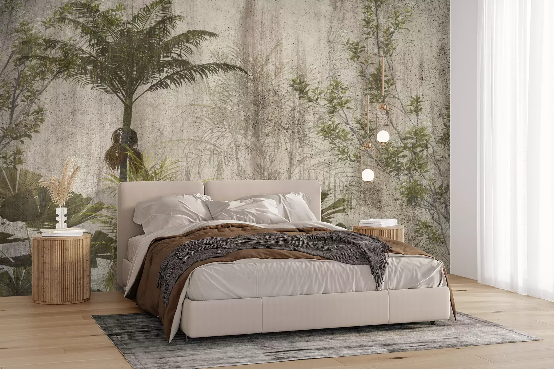 Het materiaal Premium+ is een gestructureerd vinyl op vlies met een gewicht van 255 g/m², dat kleine oneffenheden in de muur effectief camoufleert. De subtiele structuur van fijn zand geeft het oppervlak een exclusieve uitstraling, terwijl de halfmatte afwerking de diepte van de kleuren benadrukt. Het materiaal is dampdoorlatend, waardoor het ook in de keuken en badkamer kan worden gebruikt. De maximale breedte van één baan bedraagt 100 cm – bij grotere afmetingen wordt het fotobehang in meerdere gelijke banen verdeeld. De lijm wordt direct op de muur aangebracht en het behang wordt rand-aan-rand geplakt, wat zorgt voor een esthetisch resultaat zonder zichtbare naden. Het oppervlak kan gemakkelijk worden schoongemaakt door het voorzichtig af te nemen met een vochtige doek.