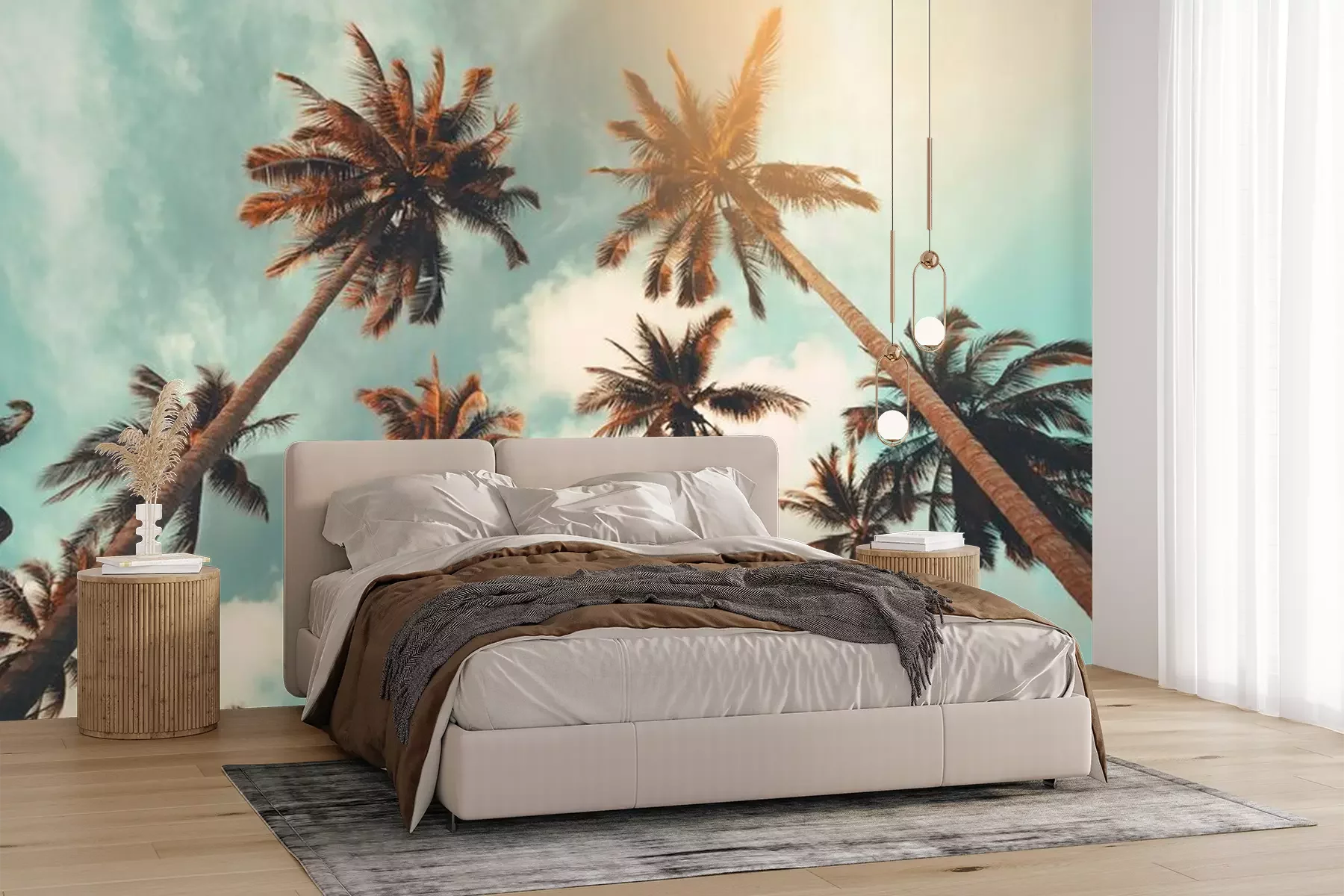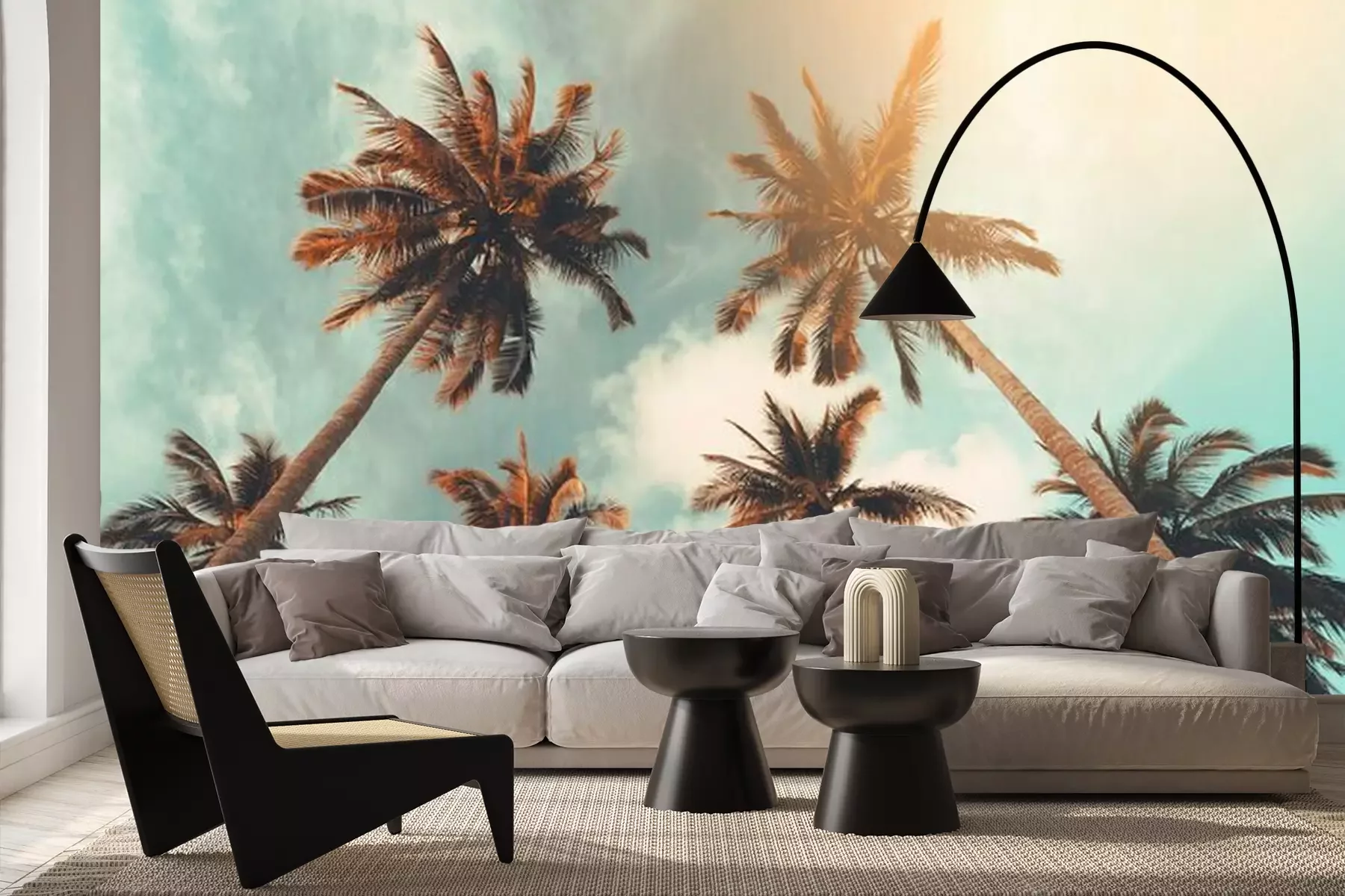 Fotobehang Palmbomen op een retro hemelachtergrond