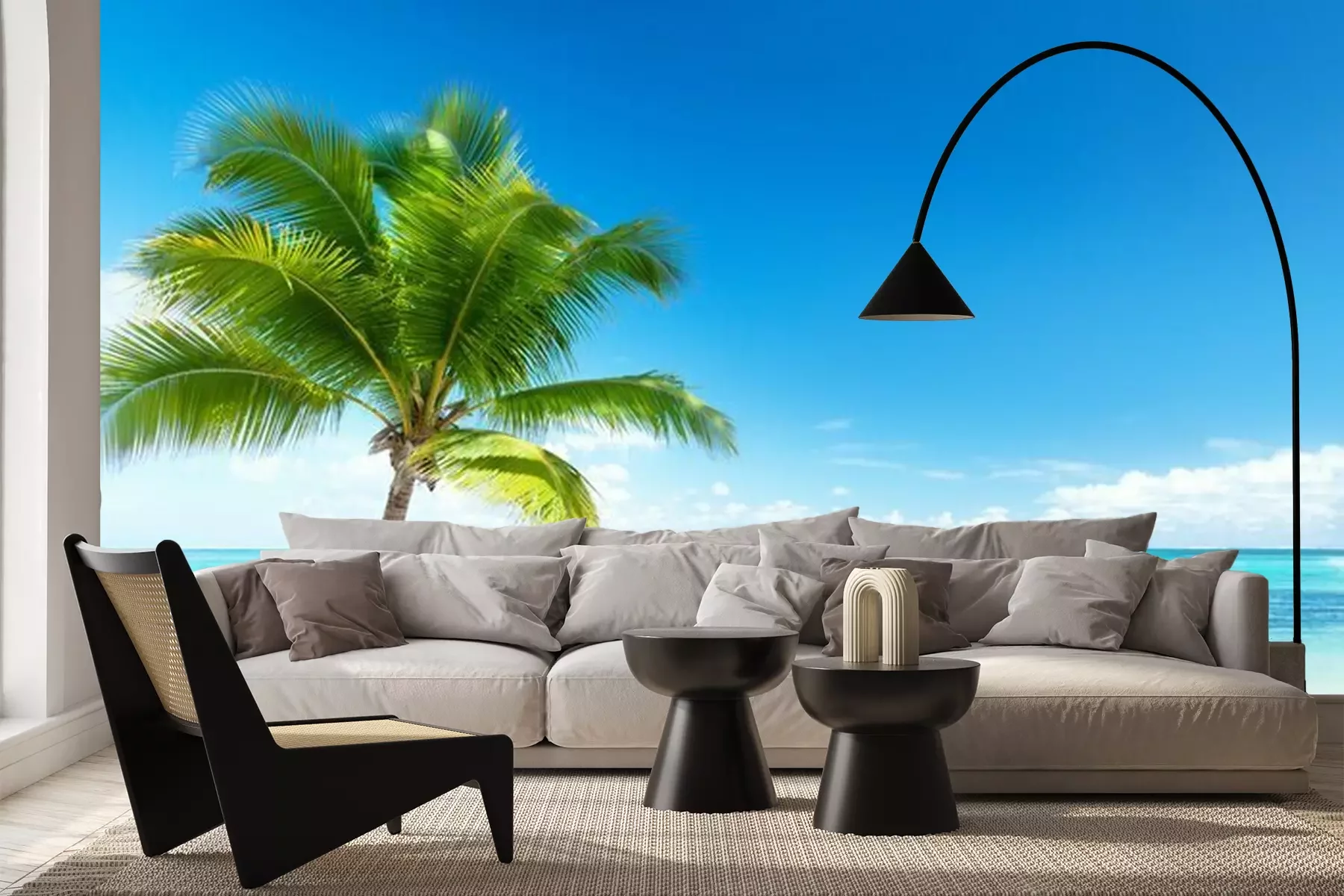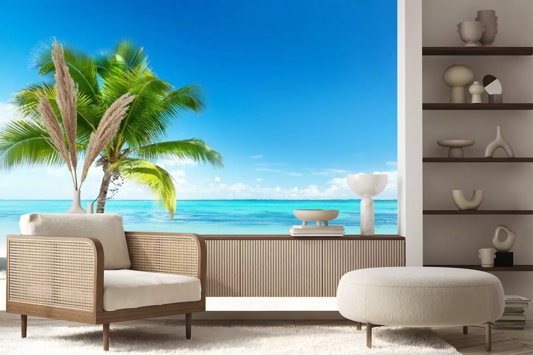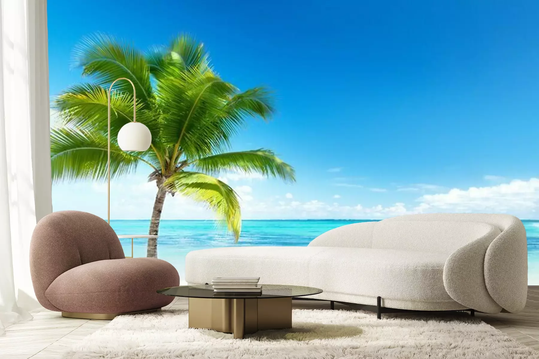 Zee zand en palmbomenFotobehang