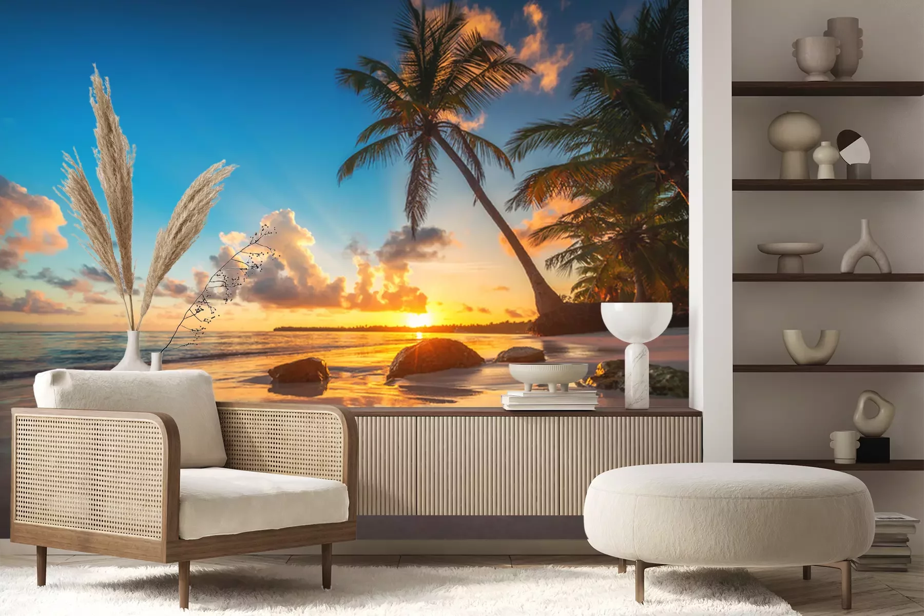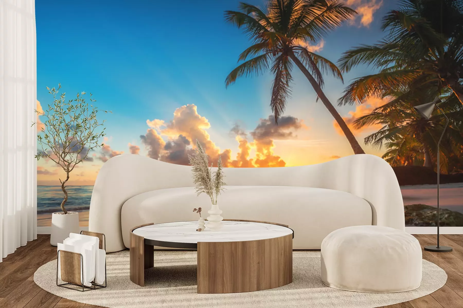 Fotobehang Palmboom op tropisch strand