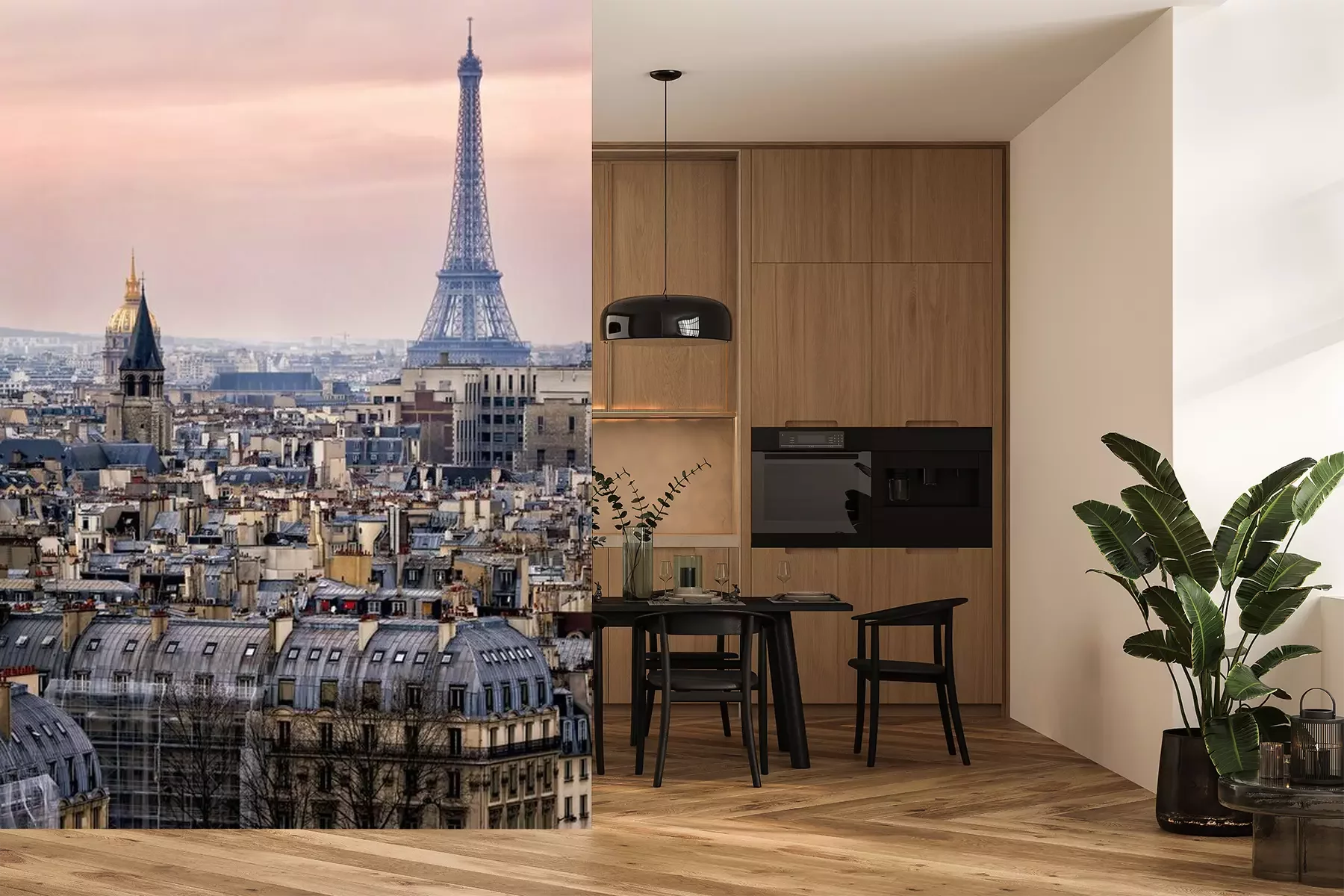 Zwart-wit panorama met ParijsProbleemloze bezorging verzorgd door vertrouwde vervoerders