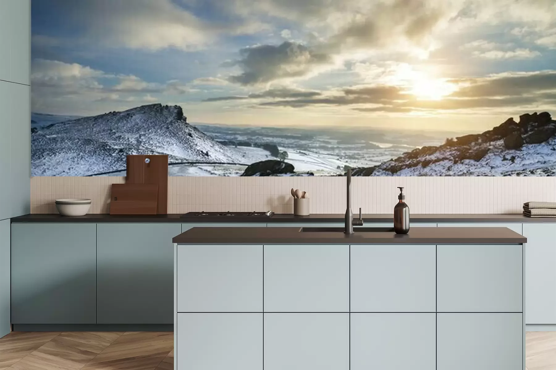 Het materiaal Premium is een glad vinyl op vlies, dat bestand is tegen uitrekken en vervorming. Het is dampdoorlatend – de muren kunnen vrij ademen – waardoor het geschikt is voor gebruik in de keuken en badkamer. Bij vervuiling kan het materiaal worden afgenomen met een vochtige doek. De maximale breedte van één baan bedraagt 95 of 105 cm, afhankelijk van de beschikbaarheid. Montage vindt plaats met de rand-aan-rand methode, wat een esthetisch resultaat zonder zichtbare naden oplevert. Omdat de lijm rechtstreeks op de muur wordt aangebracht, verloopt de installatie van het fotobehang snel en eenvoudig.