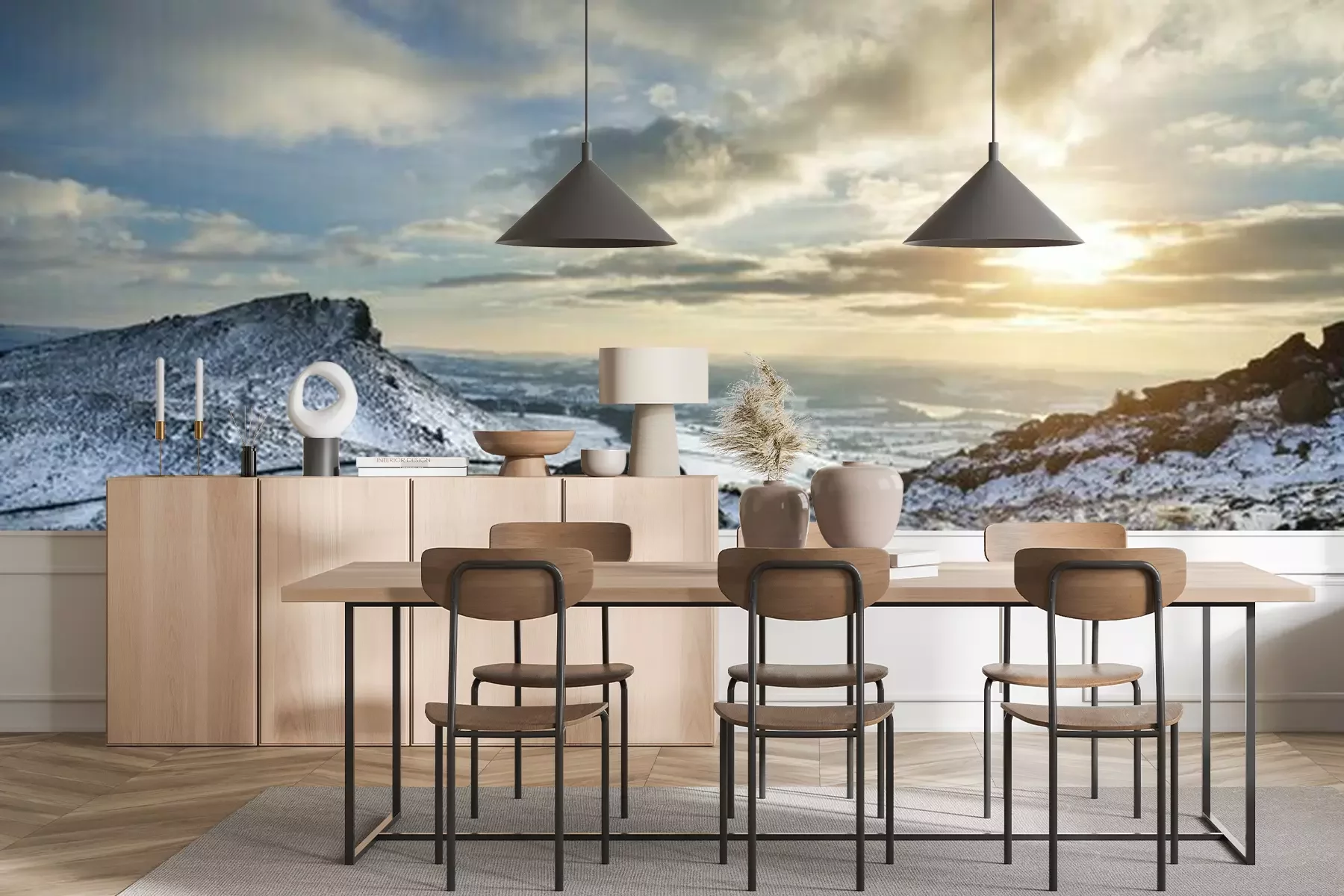 Het materiaal Premium+ is een gestructureerd vinyl op vlies met een gewicht van 255 g/m², dat kleine oneffenheden in de muur effectief camoufleert. De subtiele structuur van fijn zand geeft het oppervlak een exclusieve uitstraling, terwijl de halfmatte afwerking de diepte van de kleuren benadrukt. Het materiaal is dampdoorlatend, waardoor het ook in de keuken en badkamer kan worden gebruikt. De maximale breedte van één baan bedraagt 100 cm – bij grotere afmetingen wordt het fotobehang in meerdere gelijke banen verdeeld. De lijm wordt direct op de muur aangebracht en het behang wordt rand-aan-rand geplakt, wat zorgt voor een esthetisch resultaat zonder zichtbare naden. Het oppervlak kan gemakkelijk worden schoongemaakt door het voorzichtig af te nemen met een vochtige doek.