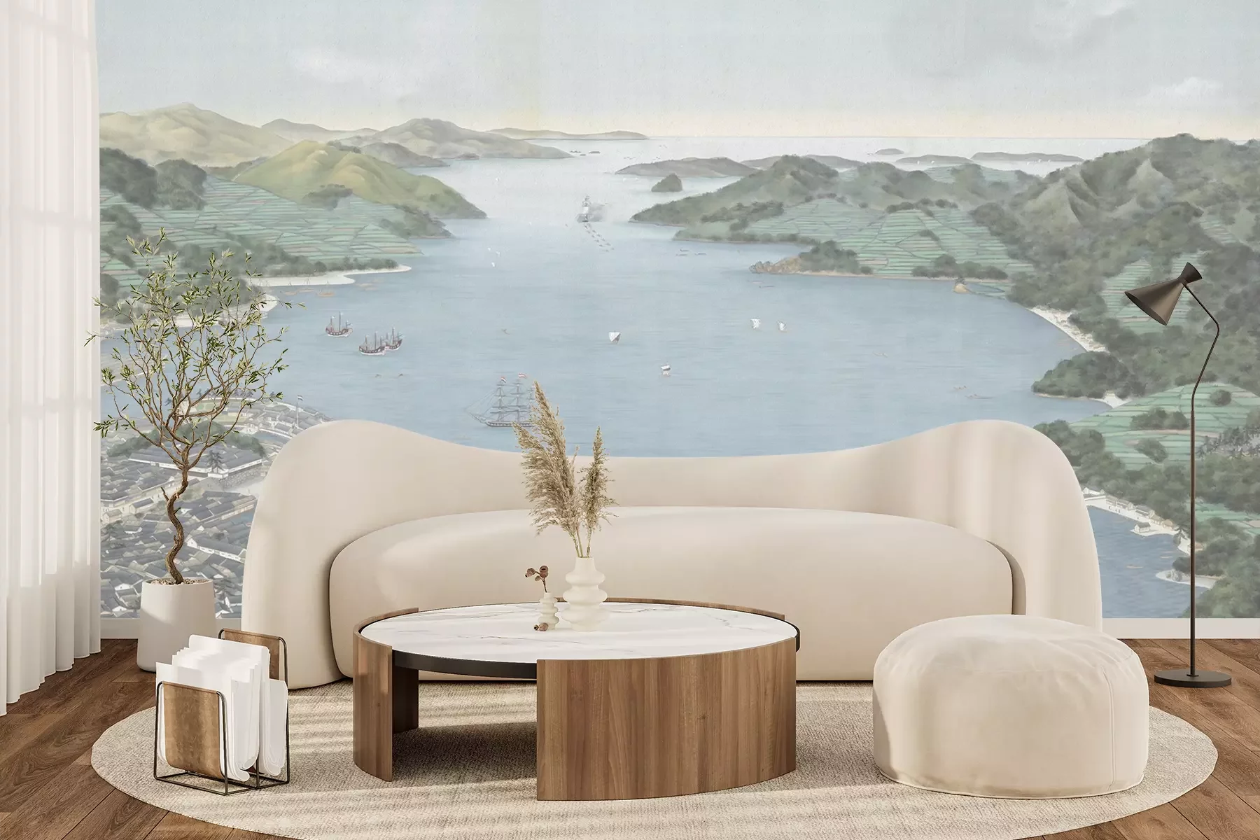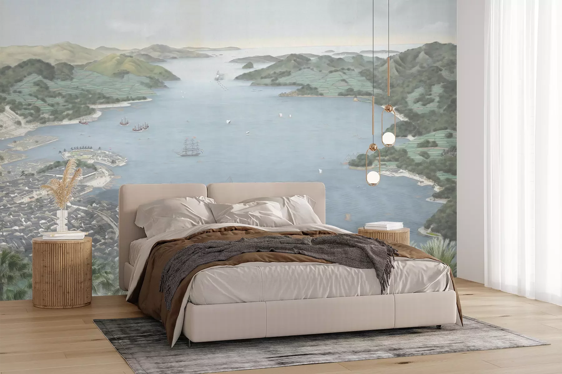 Het materiaal Premium+ is een gestructureerd vinyl op vlies met een gewicht van 255 g/m², dat kleine oneffenheden in de muur effectief camoufleert. De subtiele structuur van fijn zand geeft het oppervlak een exclusieve uitstraling, terwijl de halfmatte afwerking de diepte van de kleuren benadrukt. Het materiaal is dampdoorlatend, waardoor het ook in de keuken en badkamer kan worden gebruikt. De maximale breedte van één baan bedraagt 100 cm – bij grotere afmetingen wordt het fotobehang in meerdere gelijke banen verdeeld. De lijm wordt direct op de muur aangebracht en het behang wordt rand-aan-rand geplakt, wat zorgt voor een esthetisch resultaat zonder zichtbare naden. Het oppervlak kan gemakkelijk worden schoongemaakt door het voorzichtig af te nemen met een vochtige doek.