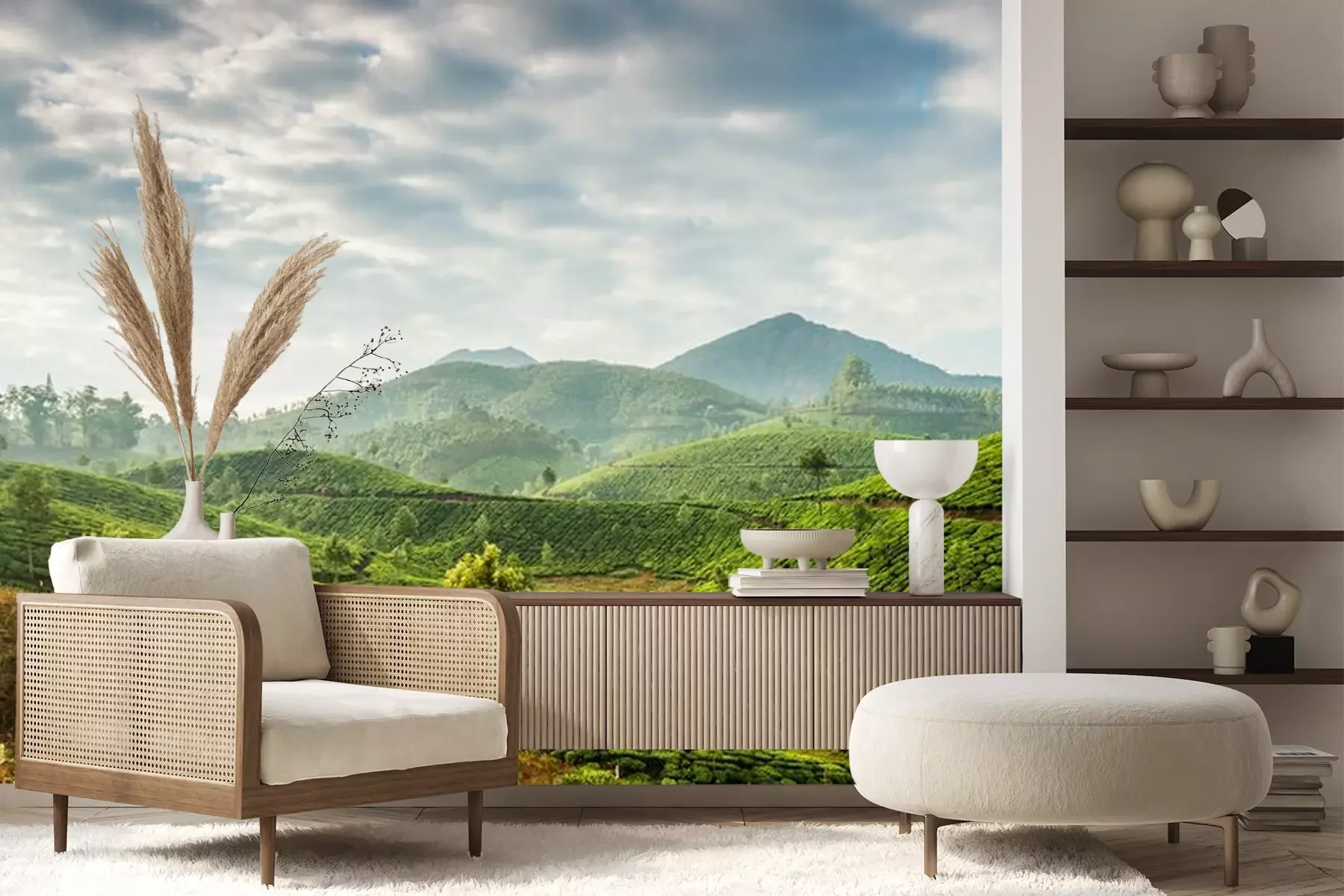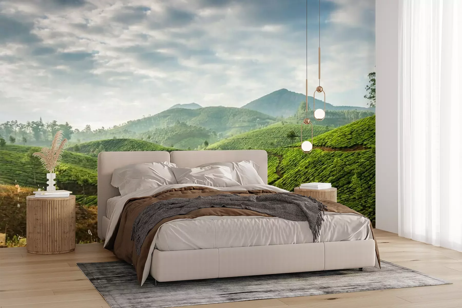Het materiaal Premium+ is een gestructureerd vinyl op vlies met een gewicht van 255 g/m², dat kleine oneffenheden in de muur effectief camoufleert. De subtiele structuur van fijn zand geeft het oppervlak een exclusieve uitstraling, terwijl de halfmatte afwerking de diepte van de kleuren benadrukt. Het materiaal is dampdoorlatend, waardoor het ook in de keuken en badkamer kan worden gebruikt. De maximale breedte van één baan bedraagt 100 cm – bij grotere afmetingen wordt het fotobehang in meerdere gelijke banen verdeeld. De lijm wordt direct op de muur aangebracht en het behang wordt rand-aan-rand geplakt, wat zorgt voor een esthetisch resultaat zonder zichtbare naden. Het oppervlak kan gemakkelijk worden schoongemaakt door het voorzichtig af te nemen met een vochtige doek.