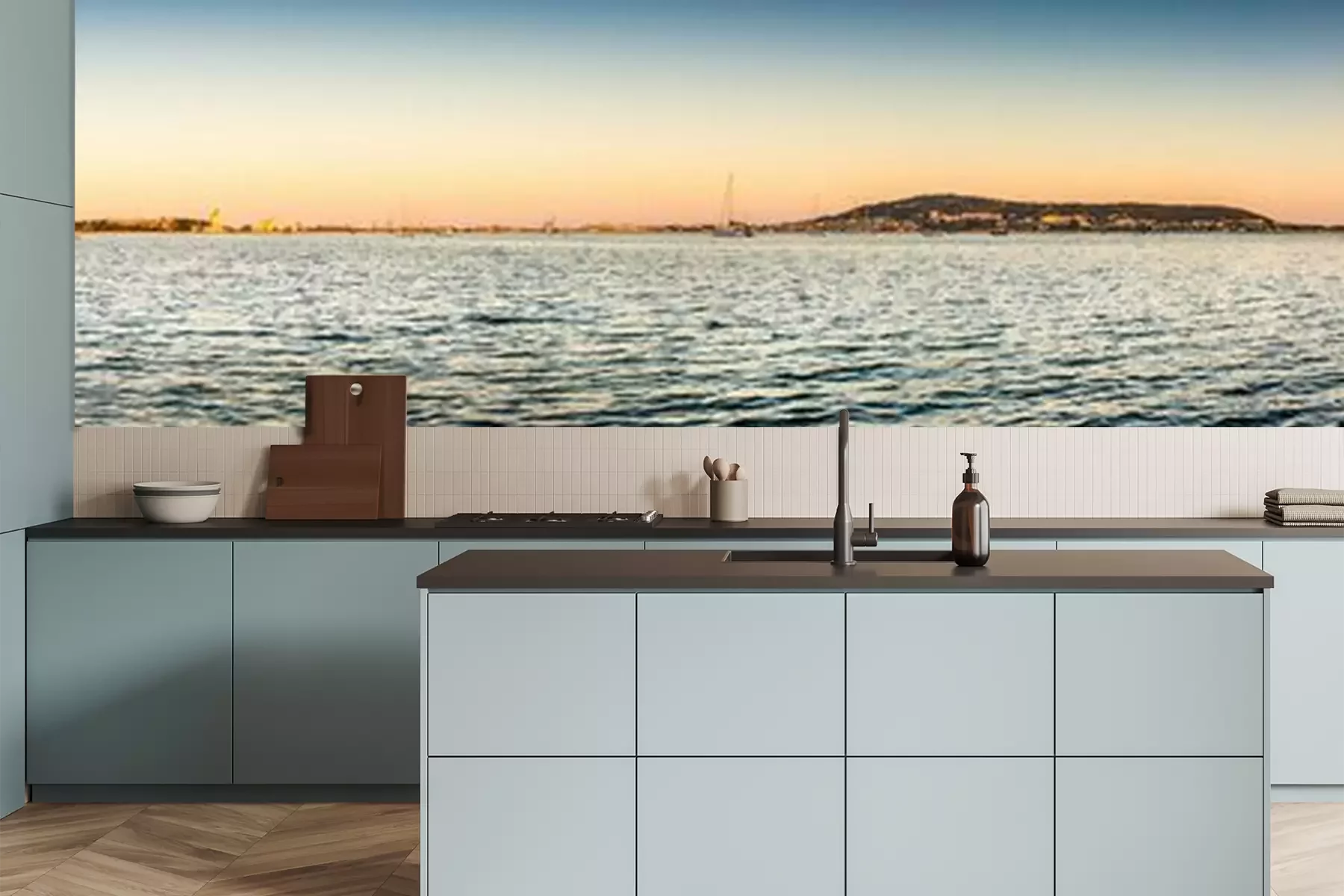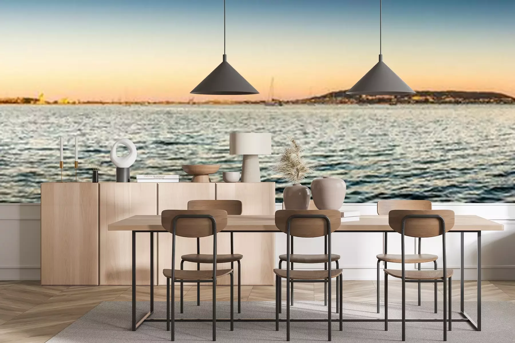 Fotobehang Panorama van de zee en de hemel in de schemering
