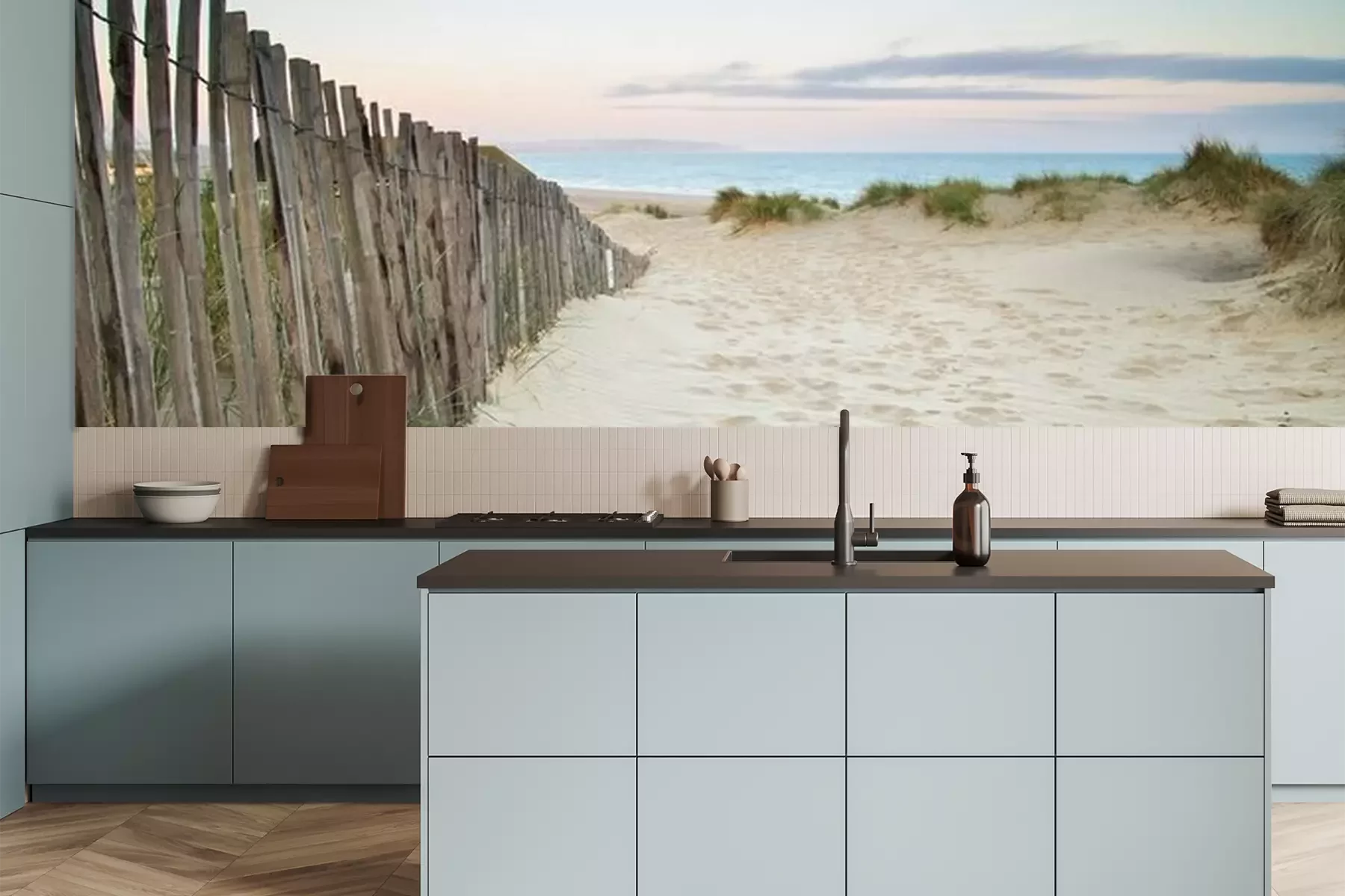 Het materiaal Premium is een glad vinyl op vlies, dat bestand is tegen uitrekken en vervorming. Het is dampdoorlatend – de muren kunnen vrij ademen – waardoor het geschikt is voor gebruik in de keuken en badkamer. Bij vervuiling kan het materiaal worden afgenomen met een vochtige doek. De maximale breedte van één baan bedraagt 95 of 105 cm, afhankelijk van de beschikbaarheid. Montage vindt plaats met de rand-aan-rand methode, wat een esthetisch resultaat zonder zichtbare naden oplevert. Omdat de lijm rechtstreeks op de muur wordt aangebracht, verloopt de installatie van het fotobehang snel en eenvoudig.