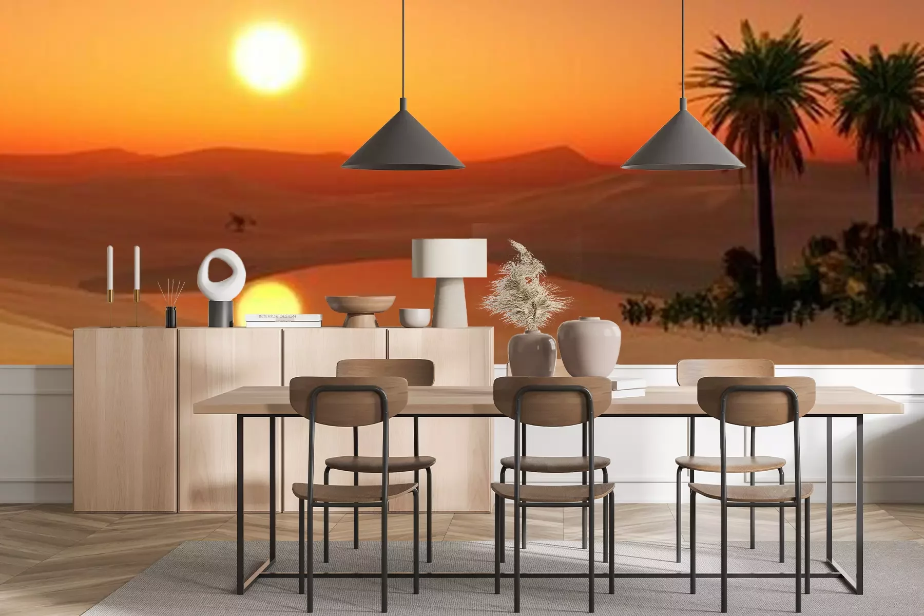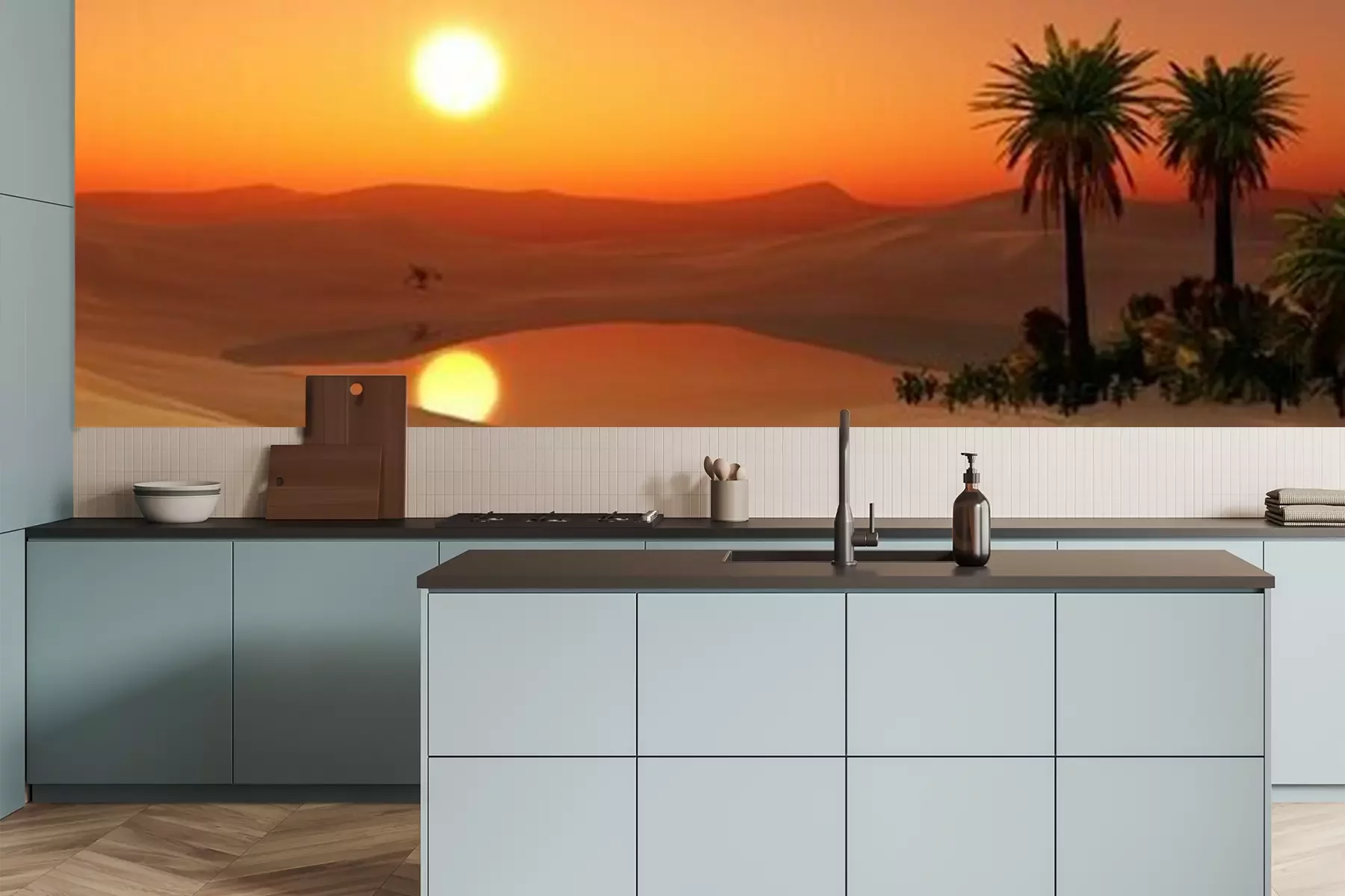 Fotobehang Panorama van een oase in de woestijn