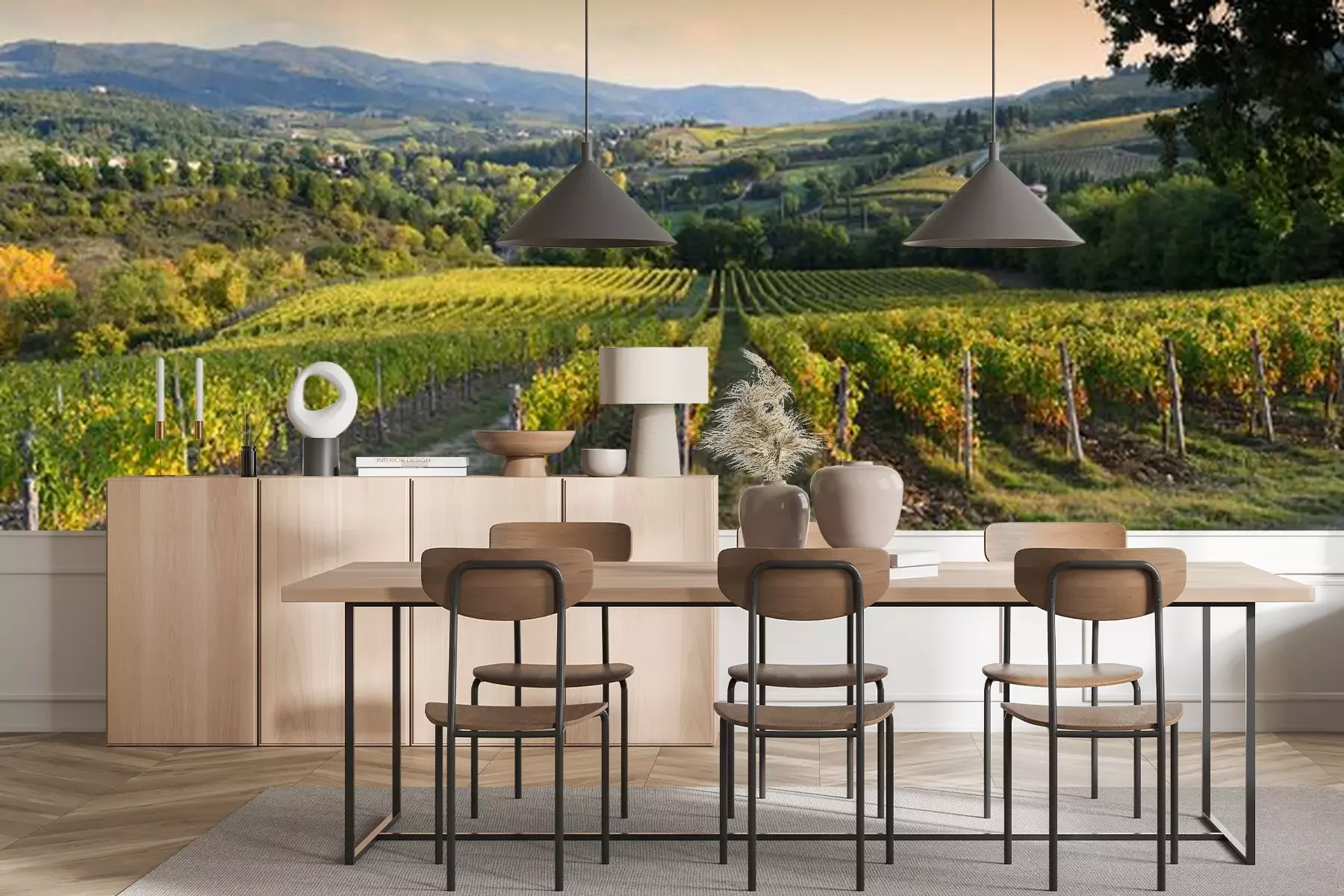 Fotobehang Panorama van een Toscaanse wijngaard