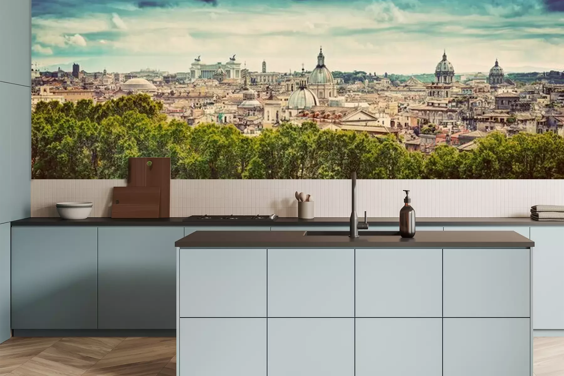 Het materiaal Premium is een glad vinyl op vlies, dat bestand is tegen uitrekken en vervorming. Het is dampdoorlatend – de muren kunnen vrij ademen – waardoor het geschikt is voor gebruik in de keuken en badkamer. Bij vervuiling kan het materiaal worden afgenomen met een vochtige doek. De maximale breedte van één baan bedraagt 95 of 105 cm, afhankelijk van de beschikbaarheid. Montage vindt plaats met de rand-aan-rand methode, wat een esthetisch resultaat zonder zichtbare naden oplevert. Omdat de lijm rechtstreeks op de muur wordt aangebracht, verloopt de installatie van het fotobehang snel en eenvoudig.