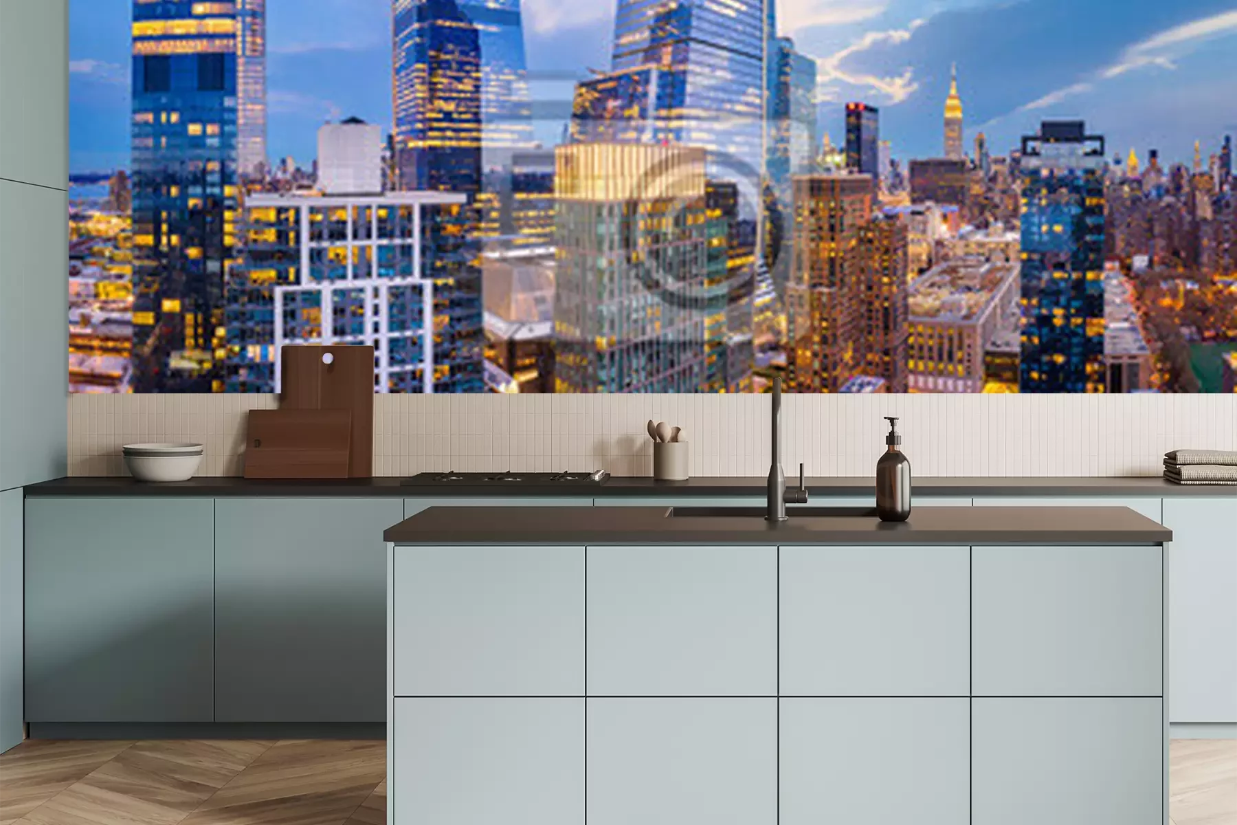 Het materiaal Premium is een glad vinyl op vlies, dat bestand is tegen uitrekken en vervorming. Het is dampdoorlatend – de muren kunnen vrij ademen – waardoor het geschikt is voor gebruik in de keuken en badkamer. Bij vervuiling kan het materiaal worden afgenomen met een vochtige doek. De maximale breedte van één baan bedraagt 95 of 105 cm, afhankelijk van de beschikbaarheid. Montage vindt plaats met de rand-aan-rand methode, wat een esthetisch resultaat zonder zichtbare naden oplevert. Omdat de lijm rechtstreeks op de muur wordt aangebracht, verloopt de installatie van het fotobehang snel en eenvoudig.
