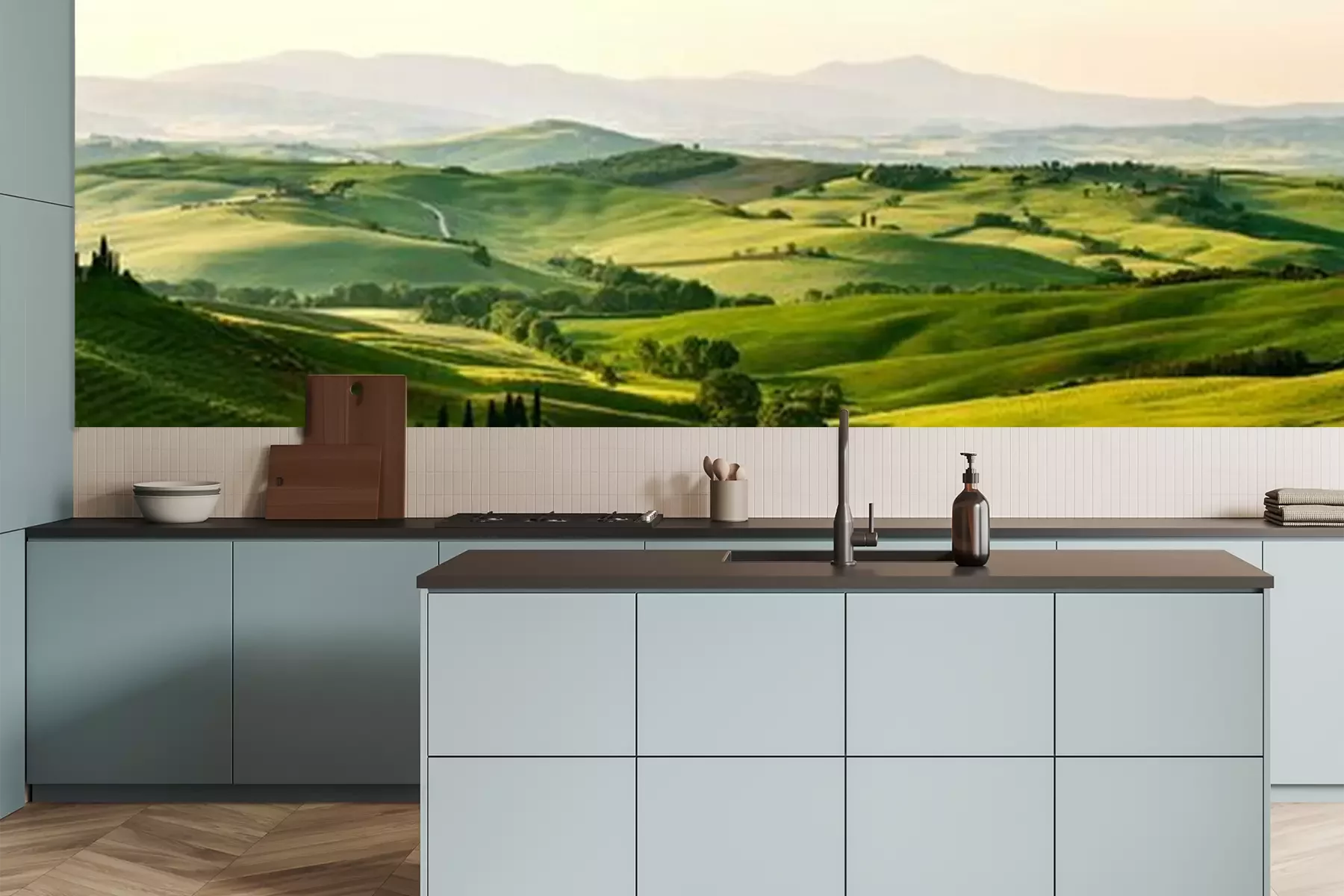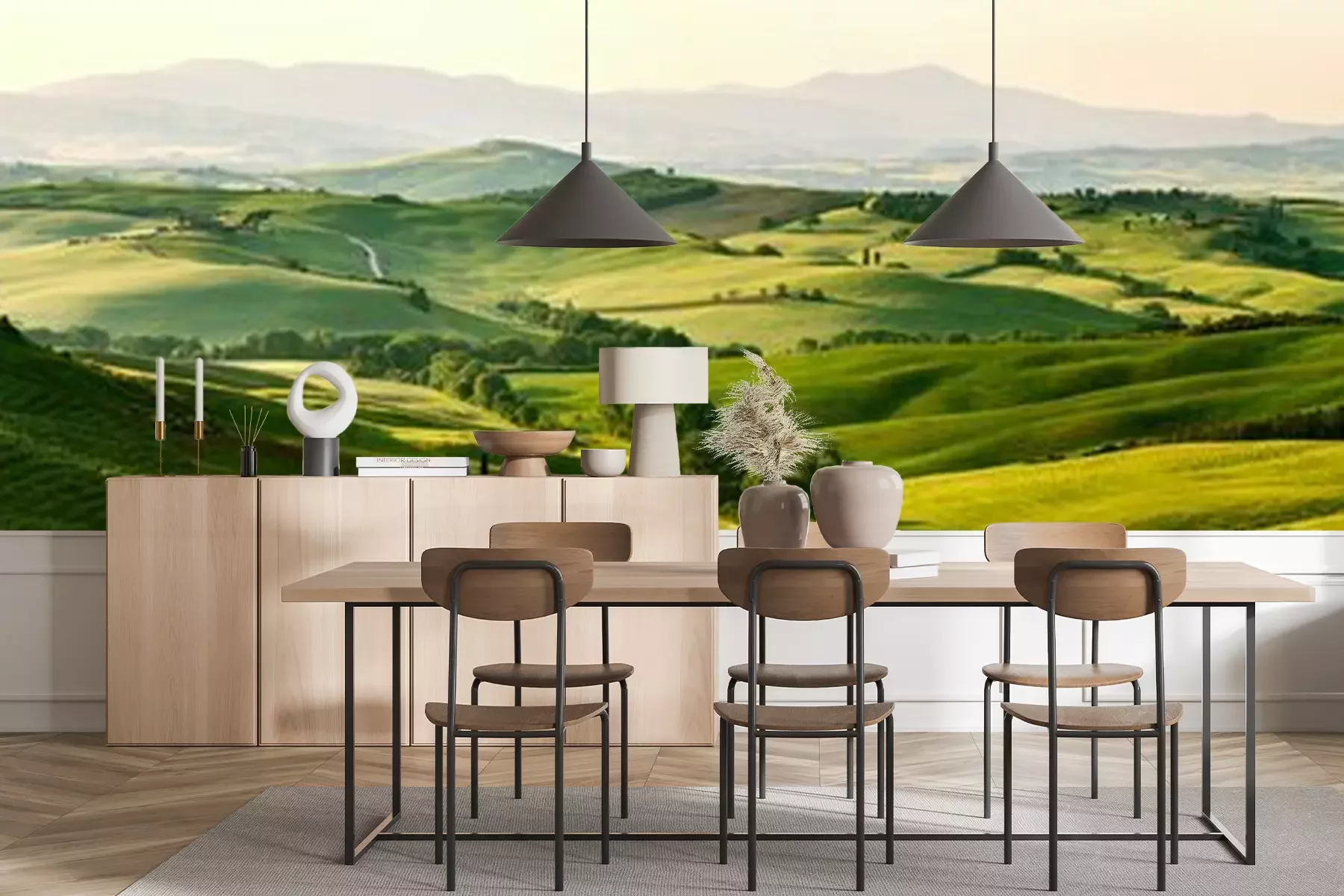 Fotobehang Panorama van weiden en velden