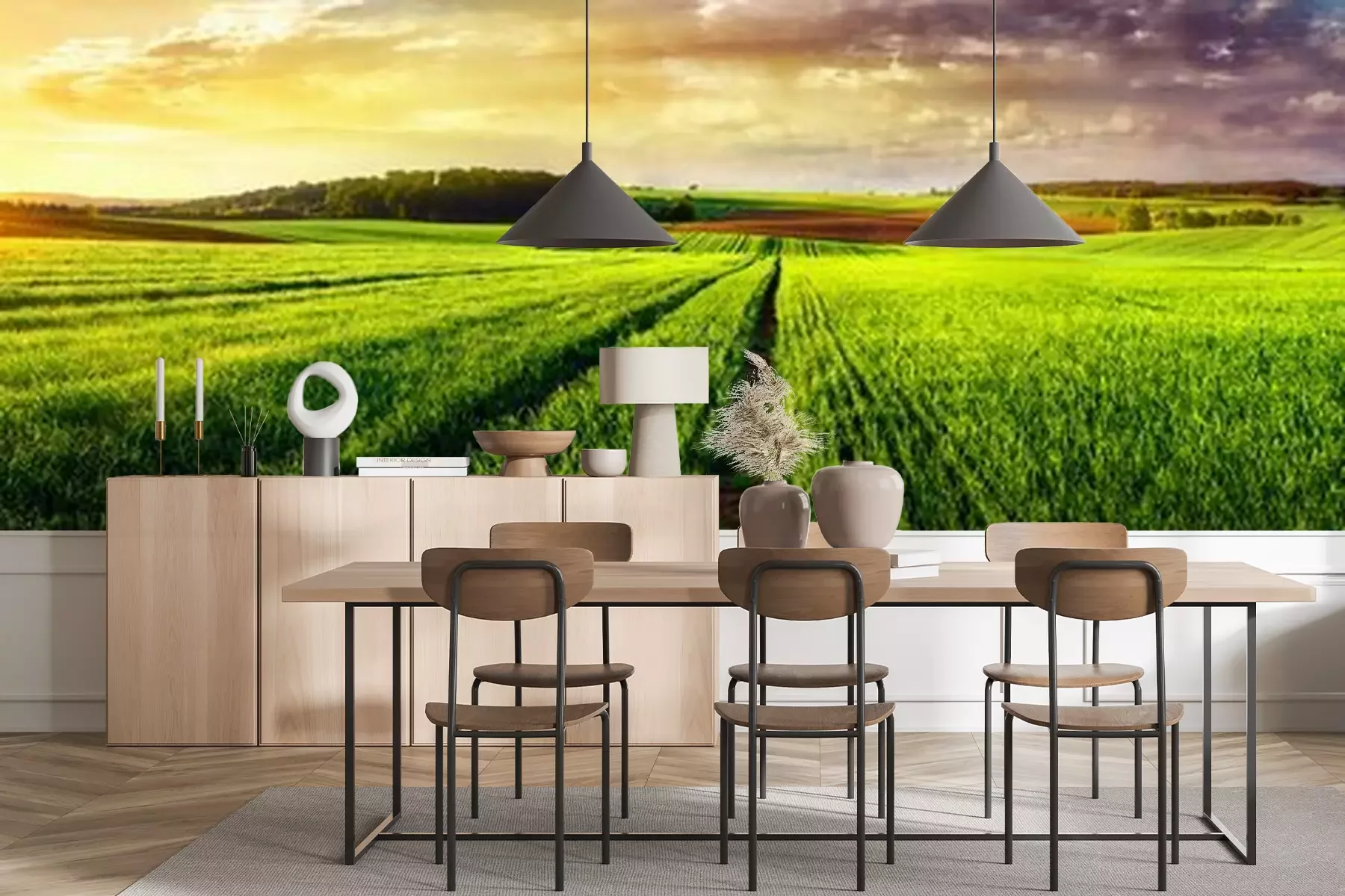 Groen veld bij zonsondergangProbleemloze bezorging verzorgd door vertrouwde vervoerders