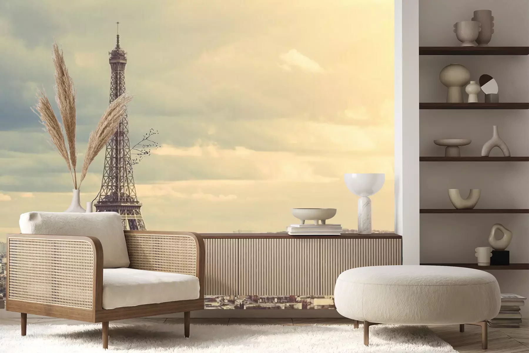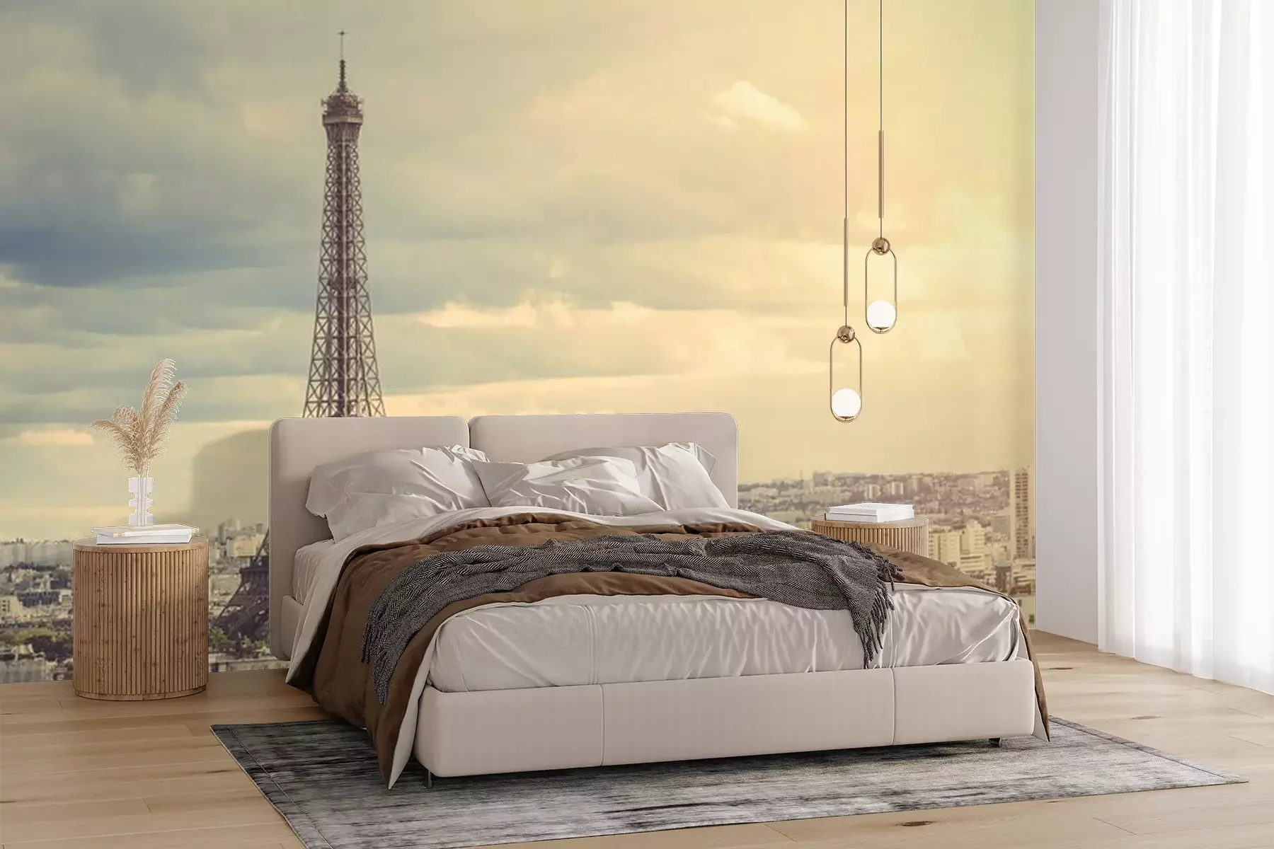Het materiaal Premium+ is een gestructureerd vinyl op vlies met een gewicht van 255 g/m², dat kleine oneffenheden in de muur effectief camoufleert. De subtiele structuur van fijn zand geeft het oppervlak een exclusieve uitstraling, terwijl de halfmatte afwerking de diepte van de kleuren benadrukt. Het materiaal is dampdoorlatend, waardoor het ook in de keuken en badkamer kan worden gebruikt. De maximale breedte van één baan bedraagt 100 cm – bij grotere afmetingen wordt het fotobehang in meerdere gelijke banen verdeeld. De lijm wordt direct op de muur aangebracht en het behang wordt rand-aan-rand geplakt, wat zorgt voor een esthetisch resultaat zonder zichtbare naden. Het oppervlak kan gemakkelijk worden schoongemaakt door het voorzichtig af te nemen met een vochtige doek.