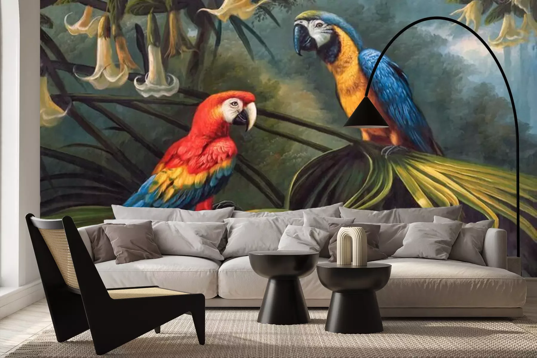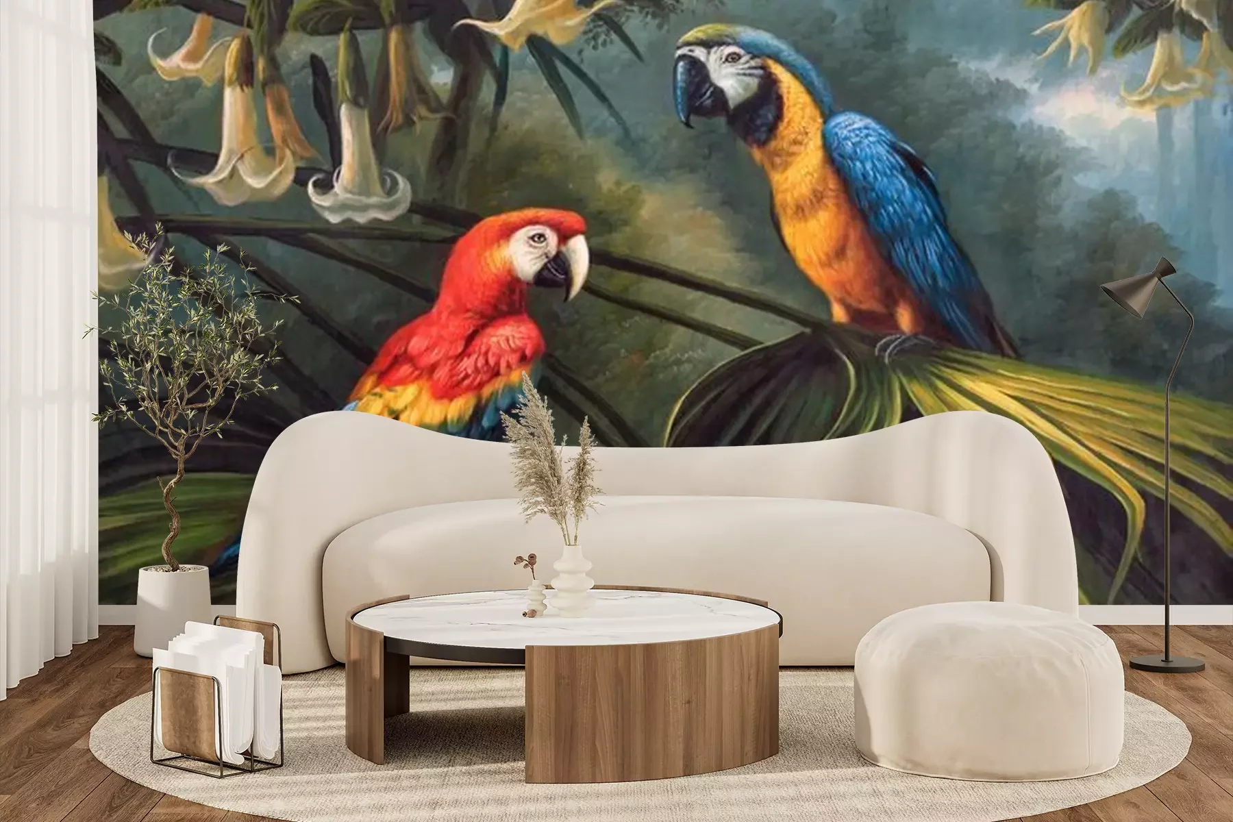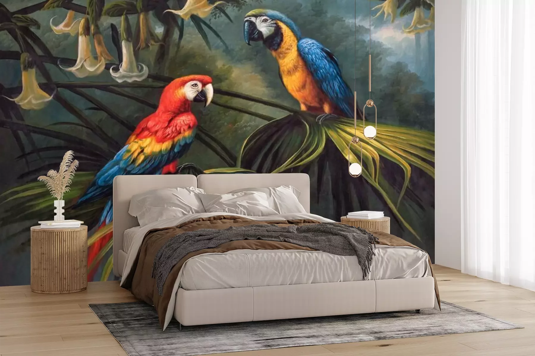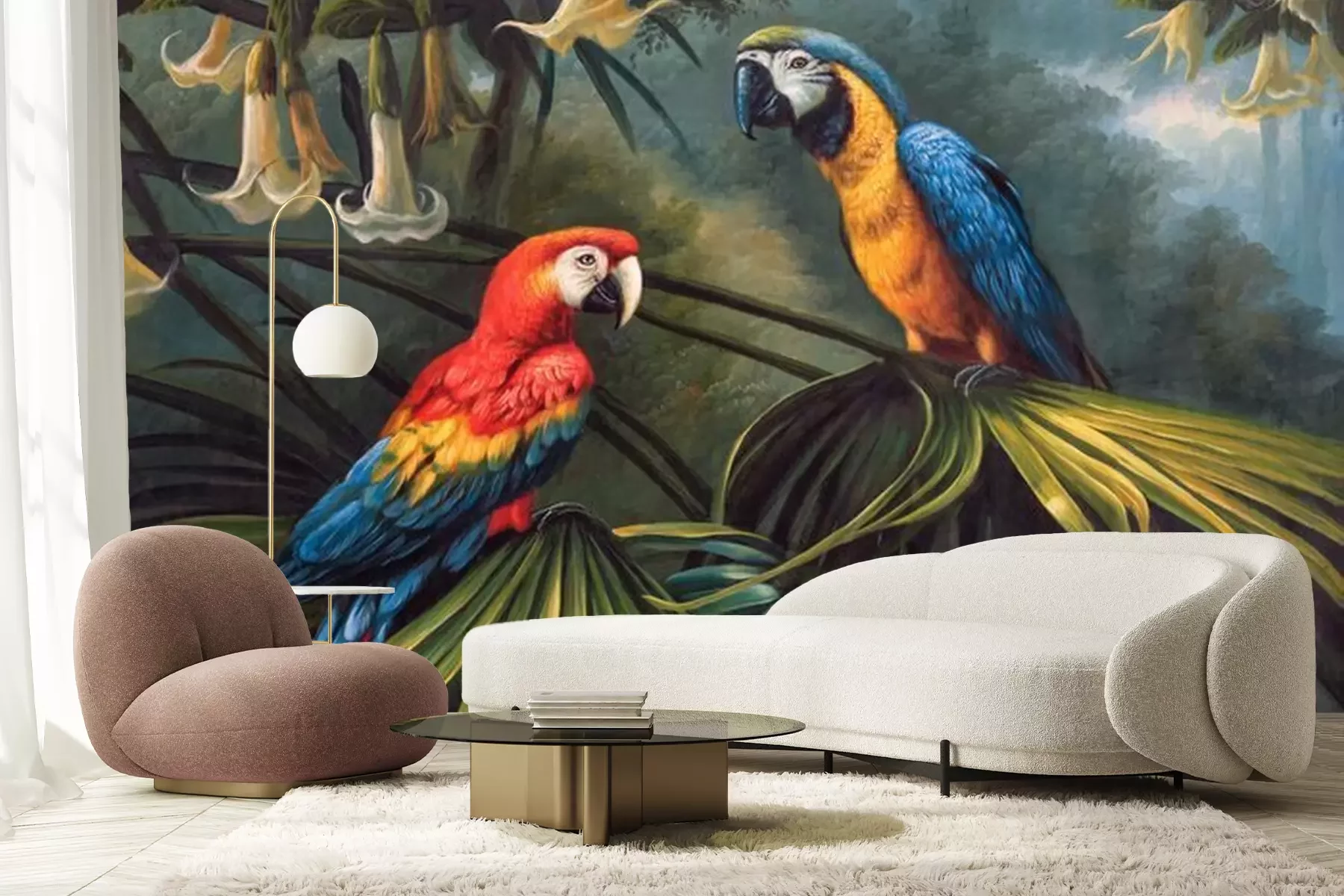 Fotobehang Papegaaien zitten op een tak in de jungle