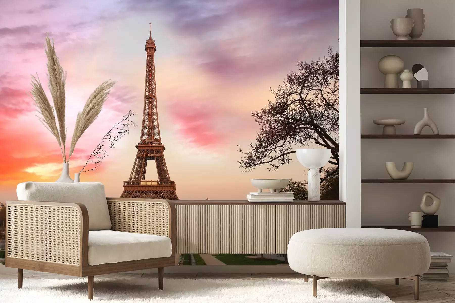 Het materiaal Premium+ is een gestructureerd vinyl op vlies met een gewicht van 255 g/m², dat kleine oneffenheden in de muur effectief camoufleert. De subtiele structuur van fijn zand geeft het oppervlak een exclusieve uitstraling, terwijl de halfmatte afwerking de diepte van de kleuren benadrukt. Het materiaal is dampdoorlatend, waardoor het ook in de keuken en badkamer kan worden gebruikt. De maximale breedte van één baan bedraagt 100 cm – bij grotere afmetingen wordt het fotobehang in meerdere gelijke banen verdeeld. De lijm wordt direct op de muur aangebracht en het behang wordt rand-aan-rand geplakt, wat zorgt voor een esthetisch resultaat zonder zichtbare naden. Het oppervlak kan gemakkelijk worden schoongemaakt door het voorzichtig af te nemen met een vochtige doek.