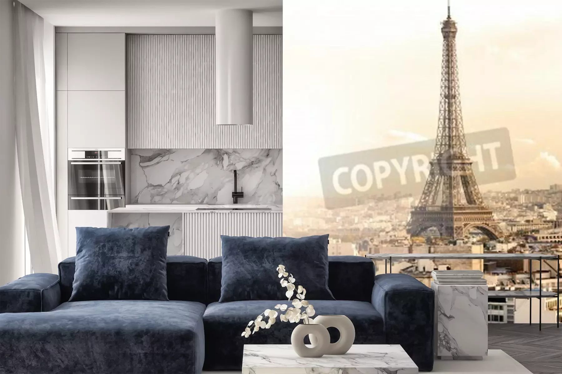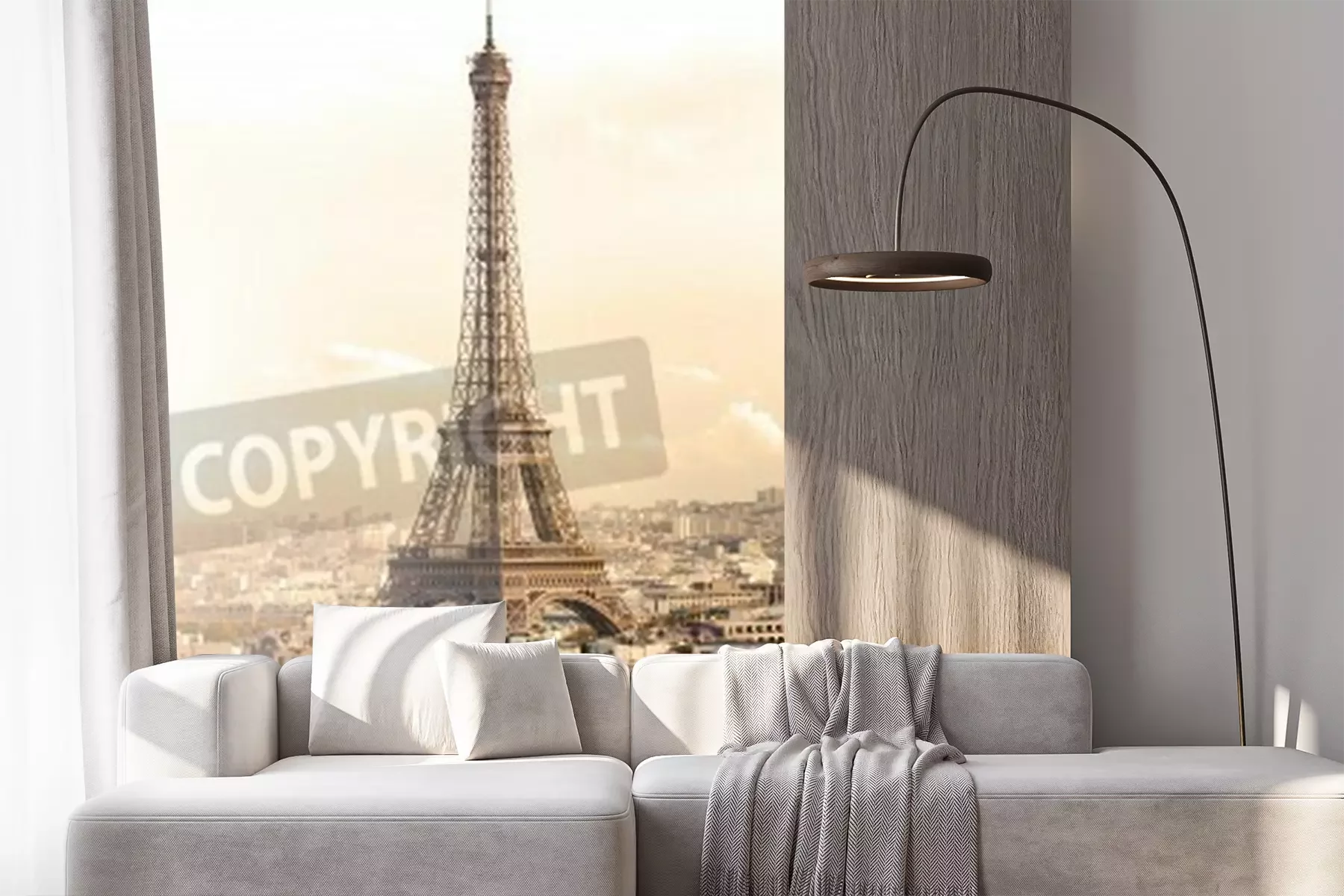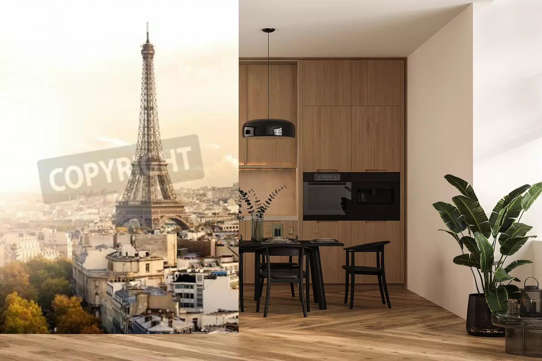 Fotobehang Parijs Eiffeltoren op een bewolkte dag