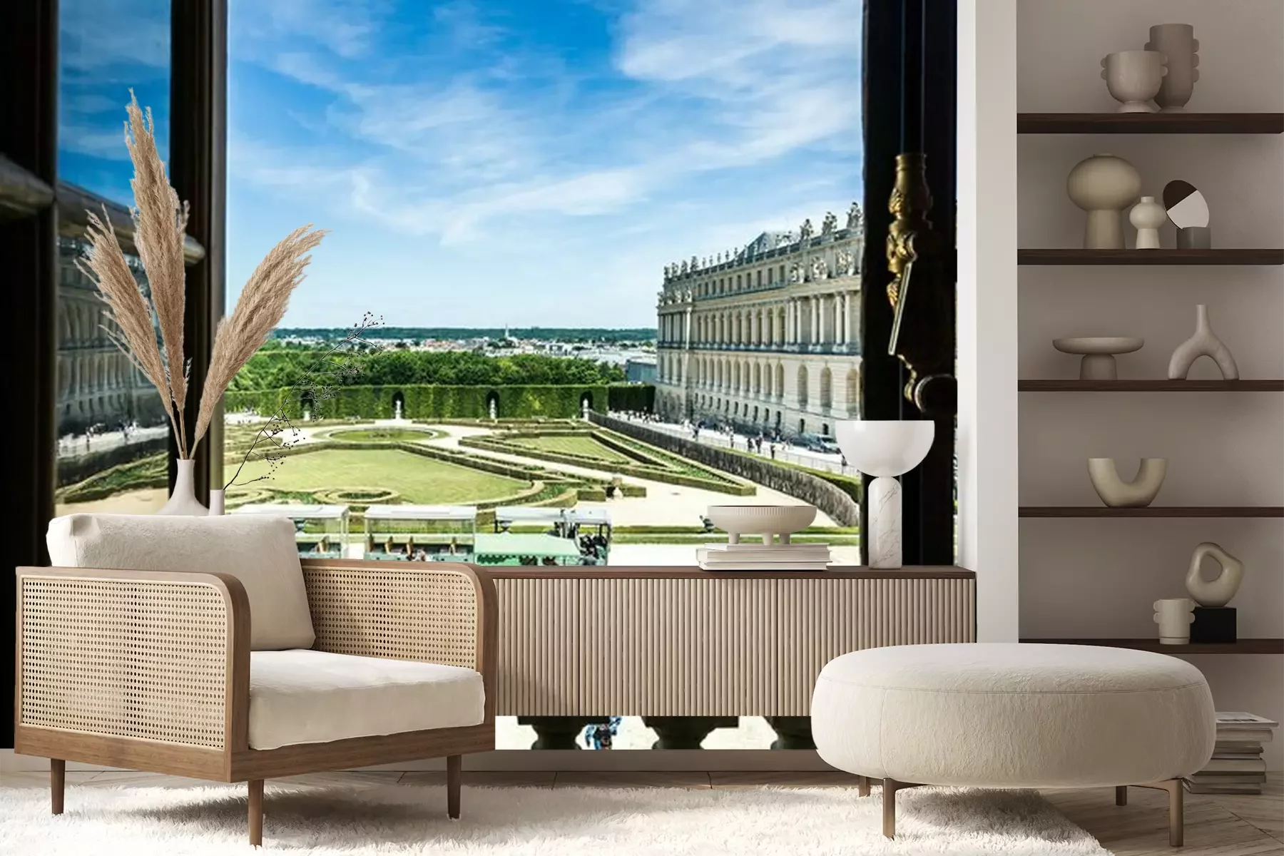 Het materiaal Premium+ is een gestructureerd vinyl op vlies met een gewicht van 255 g/m², dat kleine oneffenheden in de muur effectief camoufleert. De subtiele structuur van fijn zand geeft het oppervlak een exclusieve uitstraling, terwijl de halfmatte afwerking de diepte van de kleuren benadrukt. Het materiaal is dampdoorlatend, waardoor het ook in de keuken en badkamer kan worden gebruikt. De maximale breedte van één baan bedraagt 100 cm – bij grotere afmetingen wordt het fotobehang in meerdere gelijke banen verdeeld. De lijm wordt direct op de muur aangebracht en het behang wordt rand-aan-rand geplakt, wat zorgt voor een esthetisch resultaat zonder zichtbare naden. Het oppervlak kan gemakkelijk worden schoongemaakt door het voorzichtig af te nemen met een vochtige doek.
