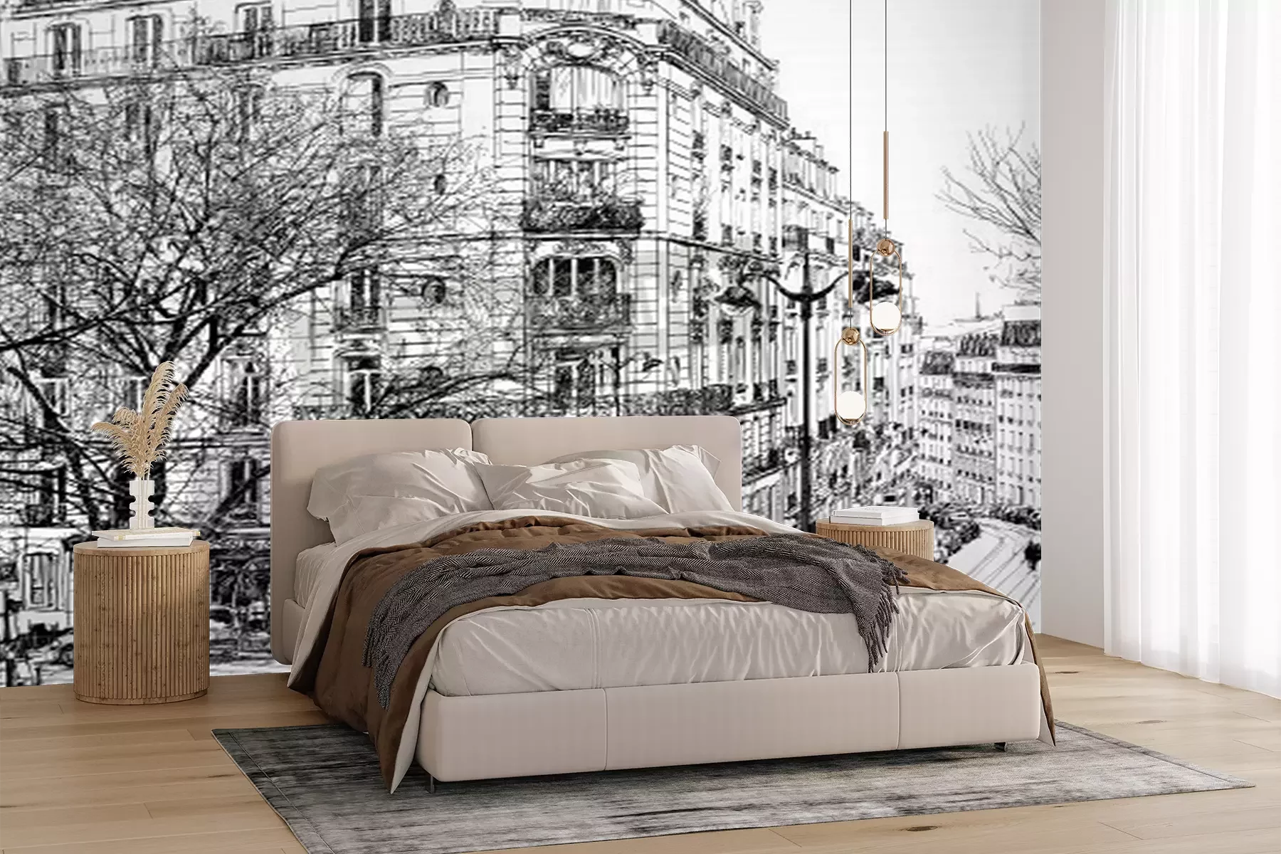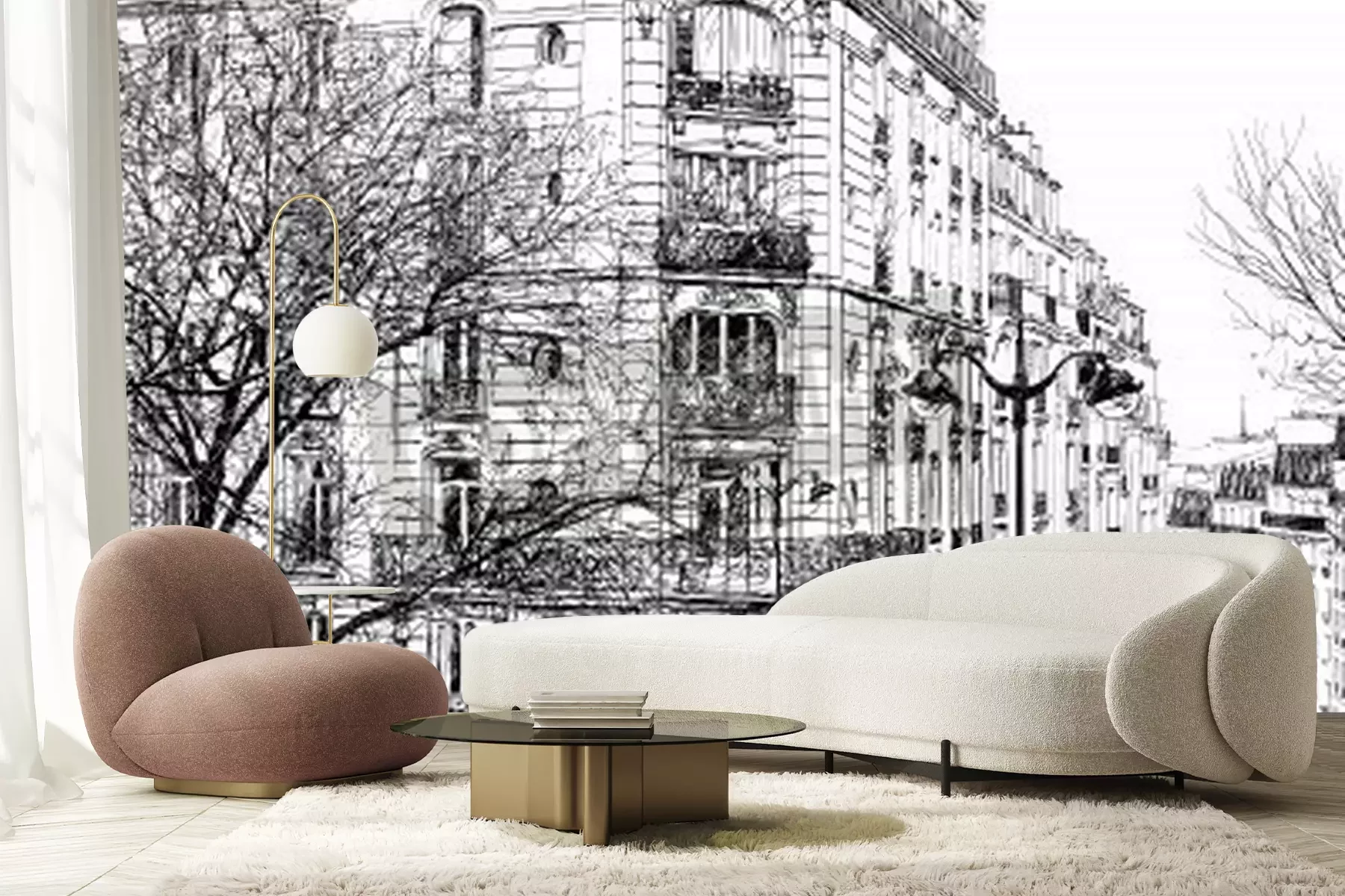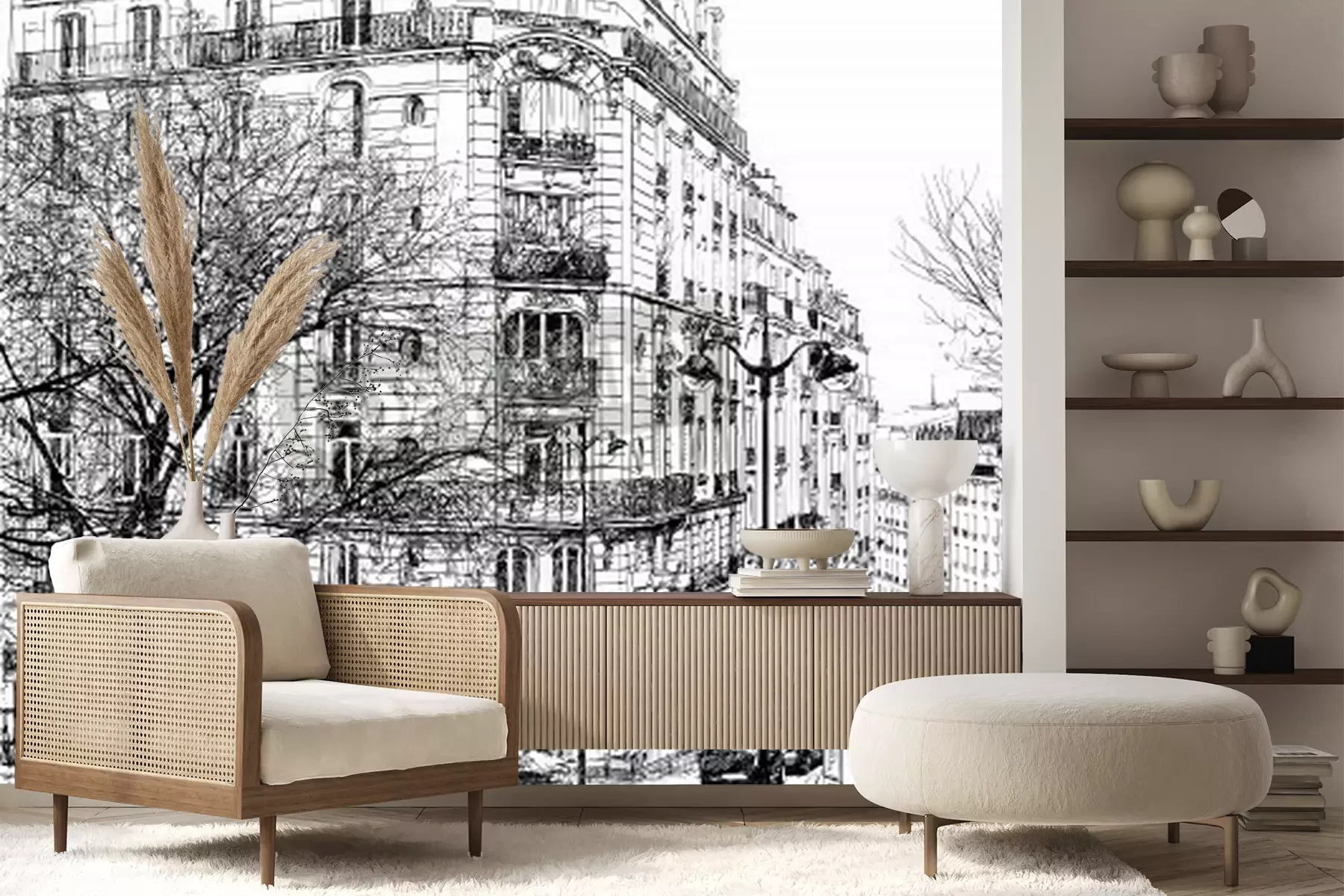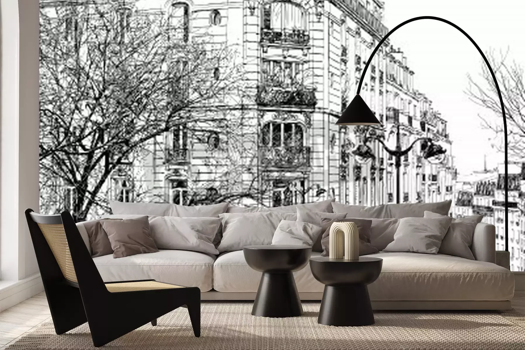 Fotobehang Parijs zwart-wit illustratie