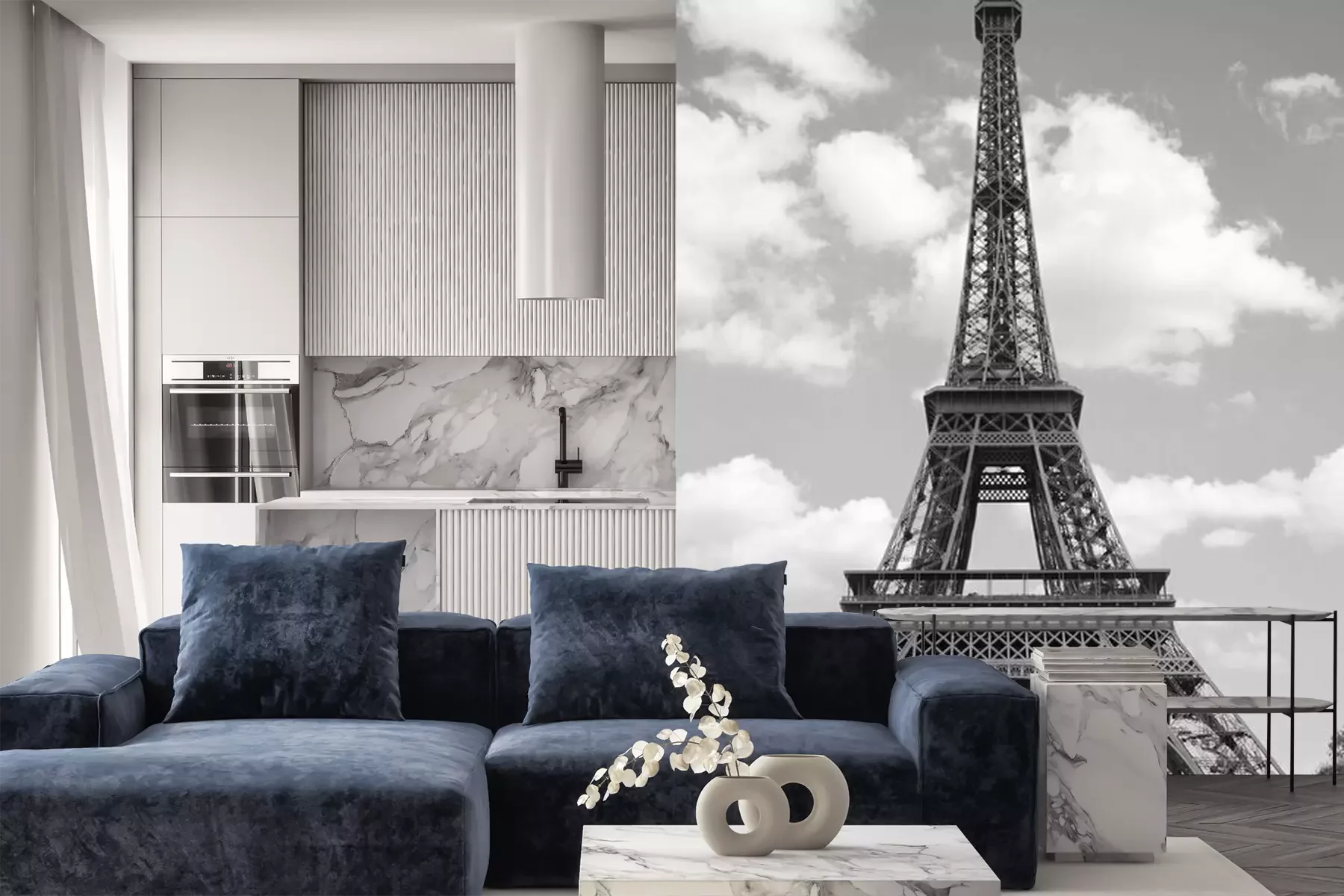 Monochrome EiffeltorenProbleemloze bezorging verzorgd door vertrouwde vervoerders