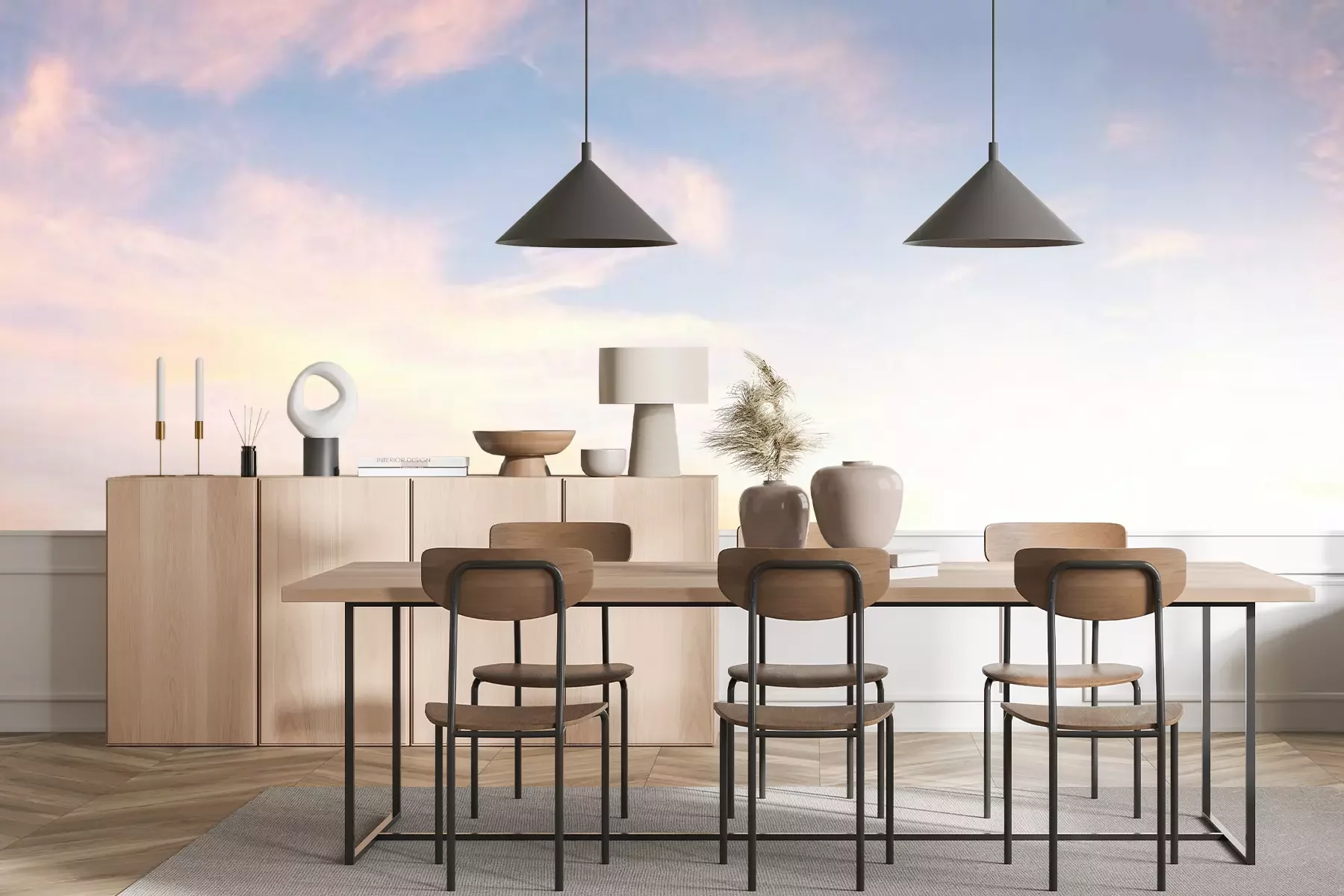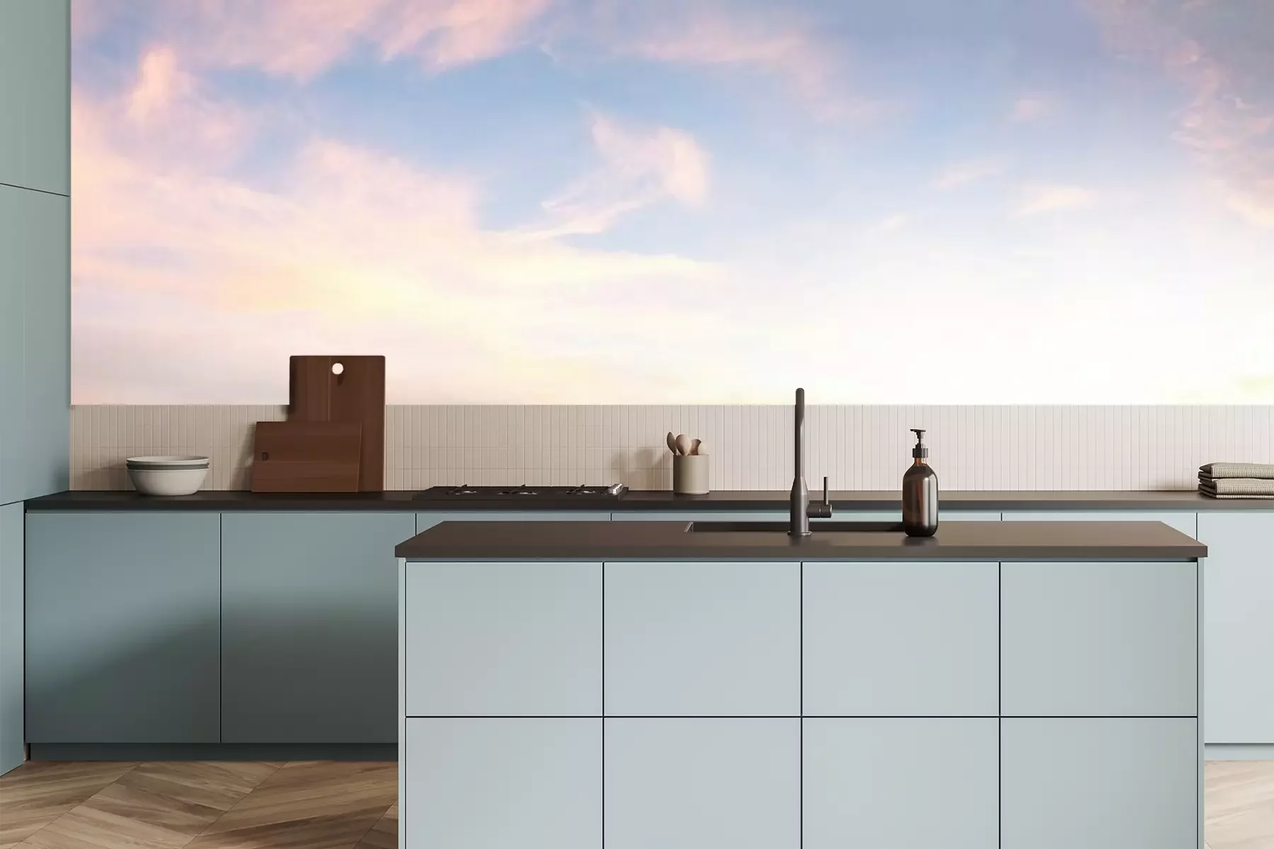 Fotobehang Pastelkleurig panorama met wolken