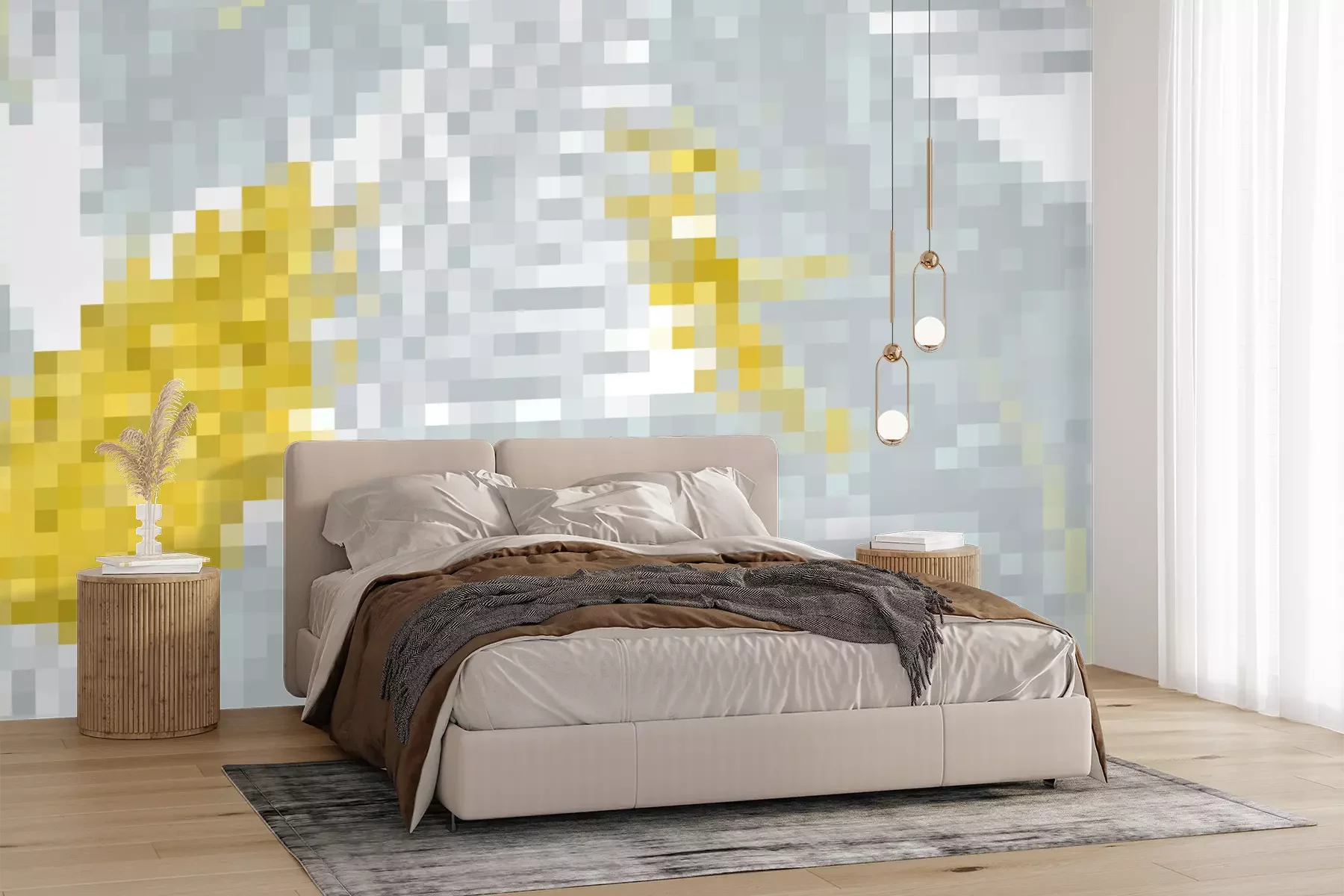 Het materiaal Premium+ is een gestructureerd vinyl op vlies met een gewicht van 255 g/m², dat kleine oneffenheden in de muur effectief camoufleert. De subtiele structuur van fijn zand geeft het oppervlak een exclusieve uitstraling, terwijl de halfmatte afwerking de diepte van de kleuren benadrukt. Het materiaal is dampdoorlatend, waardoor het ook in de keuken en badkamer kan worden gebruikt. De maximale breedte van één baan bedraagt 100 cm – bij grotere afmetingen wordt het fotobehang in meerdere gelijke banen verdeeld. De lijm wordt direct op de muur aangebracht en het behang wordt rand-aan-rand geplakt, wat zorgt voor een esthetisch resultaat zonder zichtbare naden. Het oppervlak kan gemakkelijk worden schoongemaakt door het voorzichtig af te nemen met een vochtige doek.