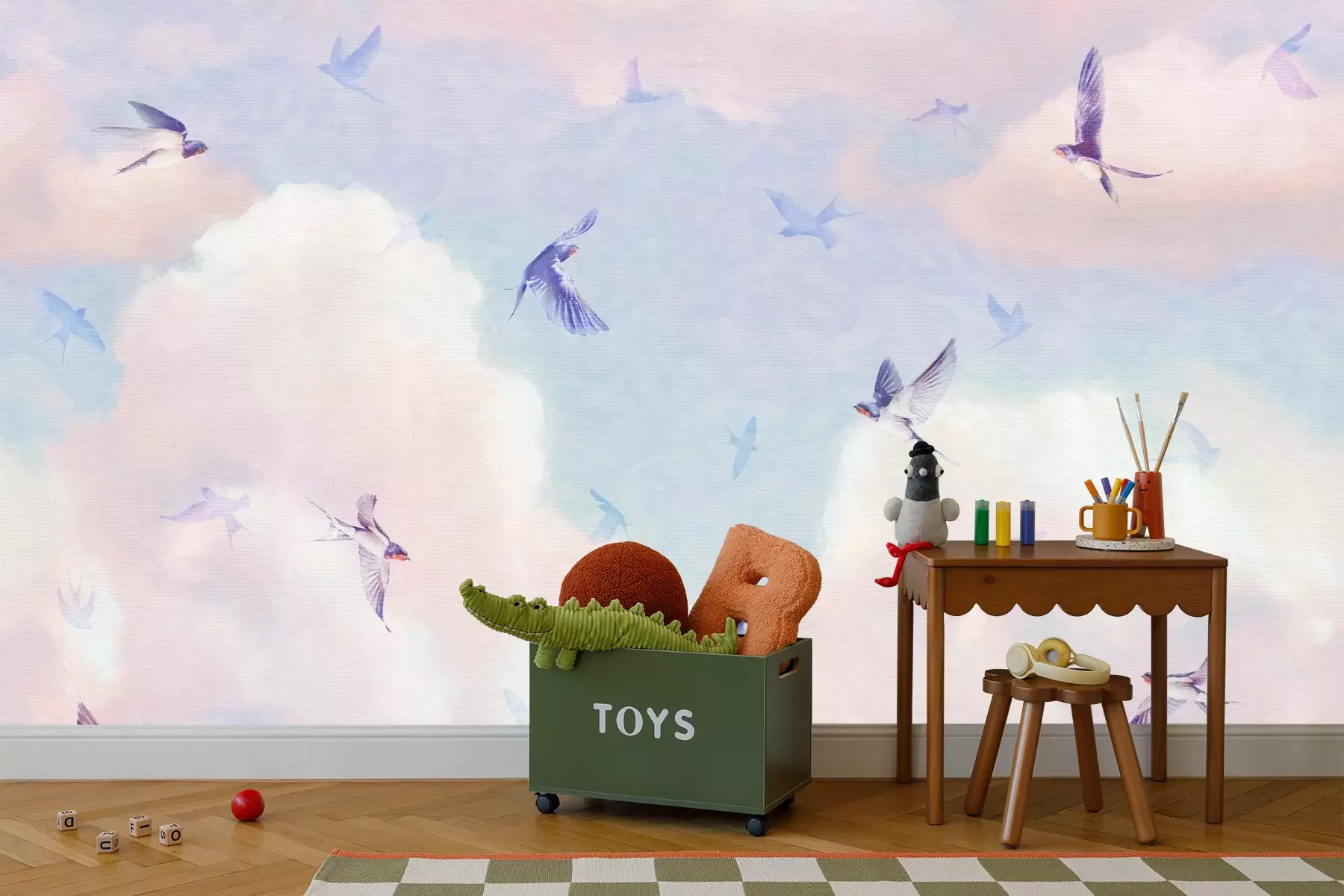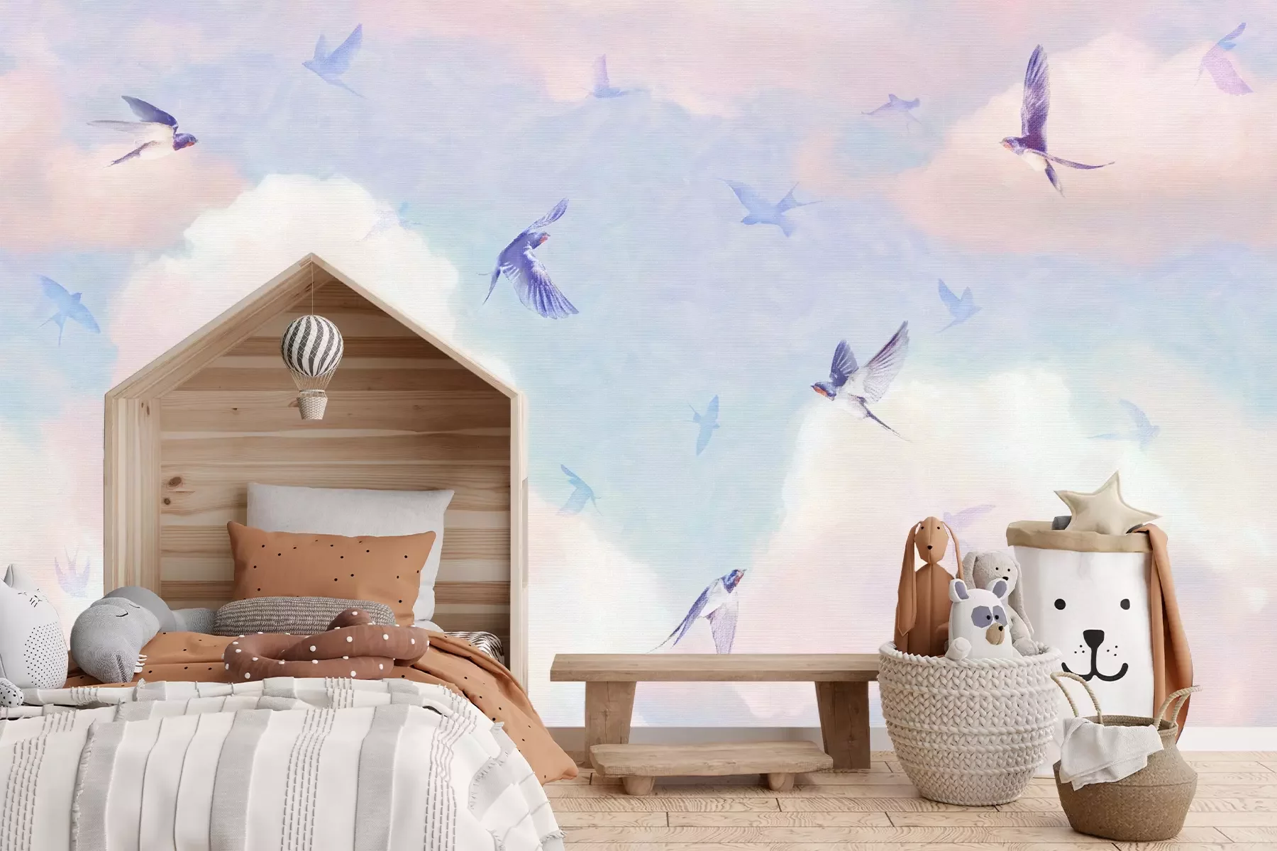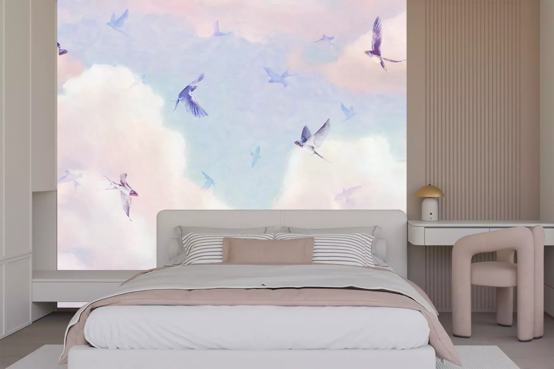 Het materiaal Premium+ is een gestructureerd vinyl op vlies met een gewicht van 255 g/m², dat kleine oneffenheden in de muur effectief camoufleert. De subtiele structuur van fijn zand geeft het oppervlak een exclusieve uitstraling, terwijl de halfmatte afwerking de diepte van de kleuren benadrukt. Het materiaal is dampdoorlatend, waardoor het ook in de keuken en badkamer kan worden gebruikt. De maximale breedte van één baan bedraagt 100 cm – bij grotere afmetingen wordt het fotobehang in meerdere gelijke banen verdeeld. De lijm wordt direct op de muur aangebracht en het behang wordt rand-aan-rand geplakt, wat zorgt voor een esthetisch resultaat zonder zichtbare naden. Het oppervlak kan gemakkelijk worden schoongemaakt door het voorzichtig af te nemen met een vochtige doek.