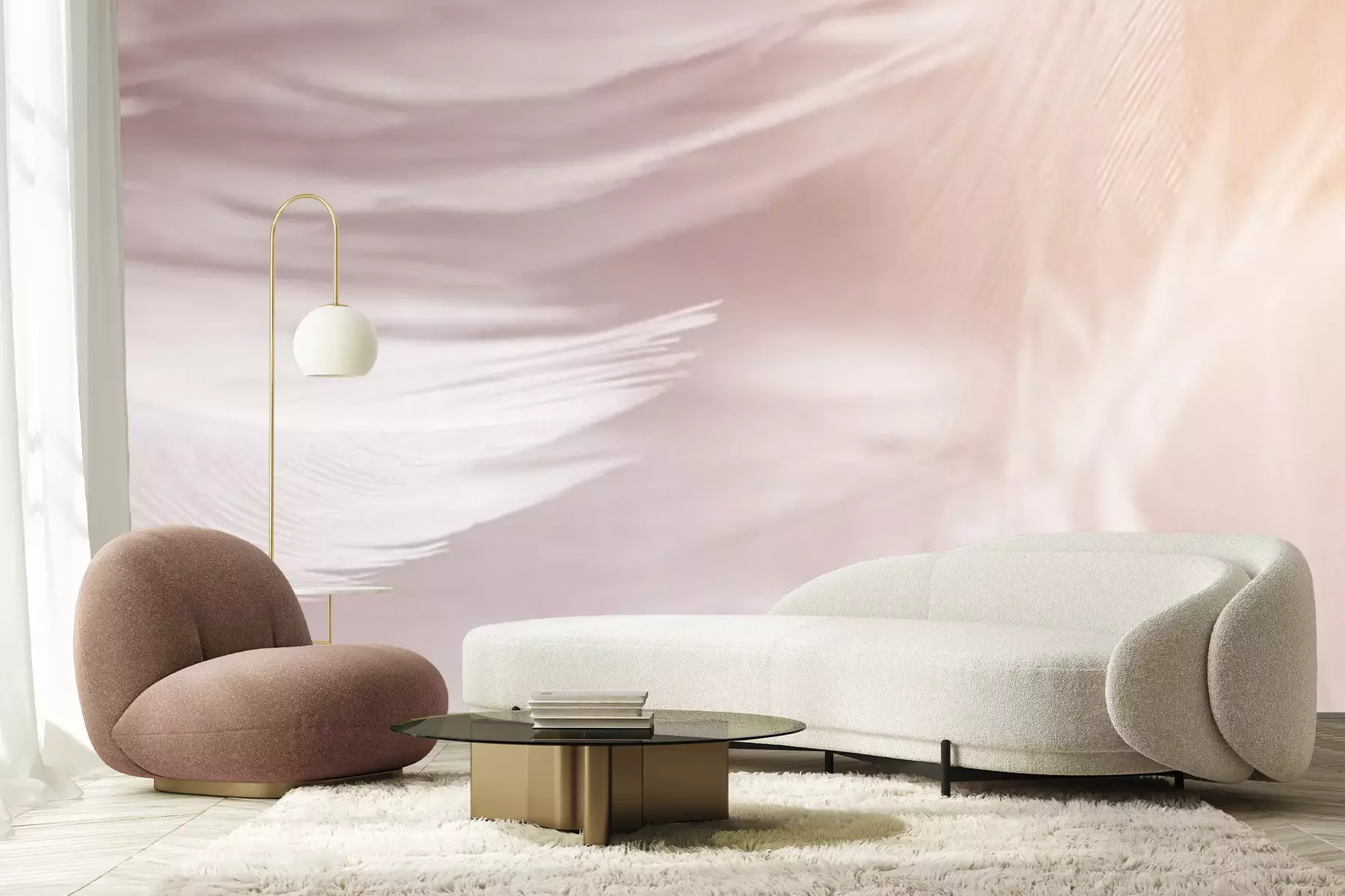 Fotobehang Pastelkleurige vogelveren
