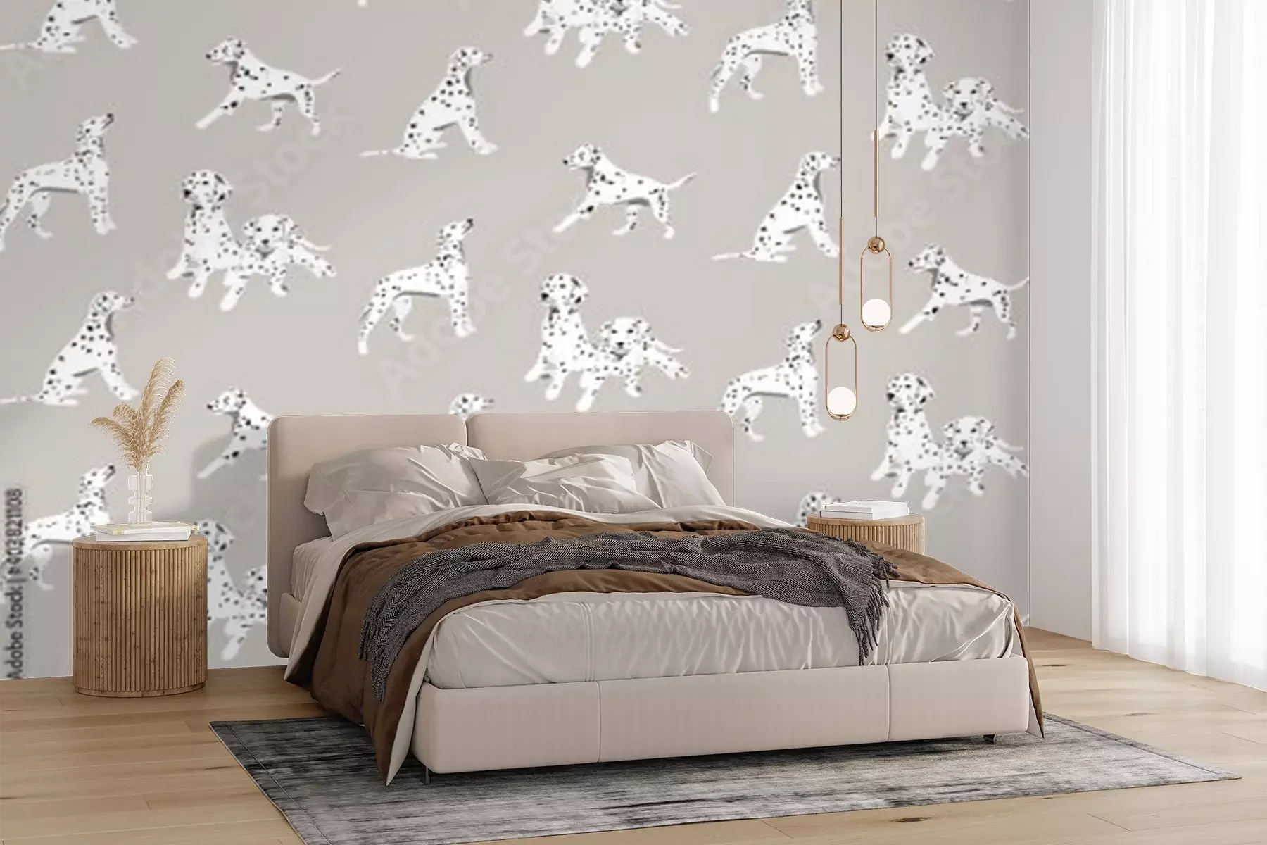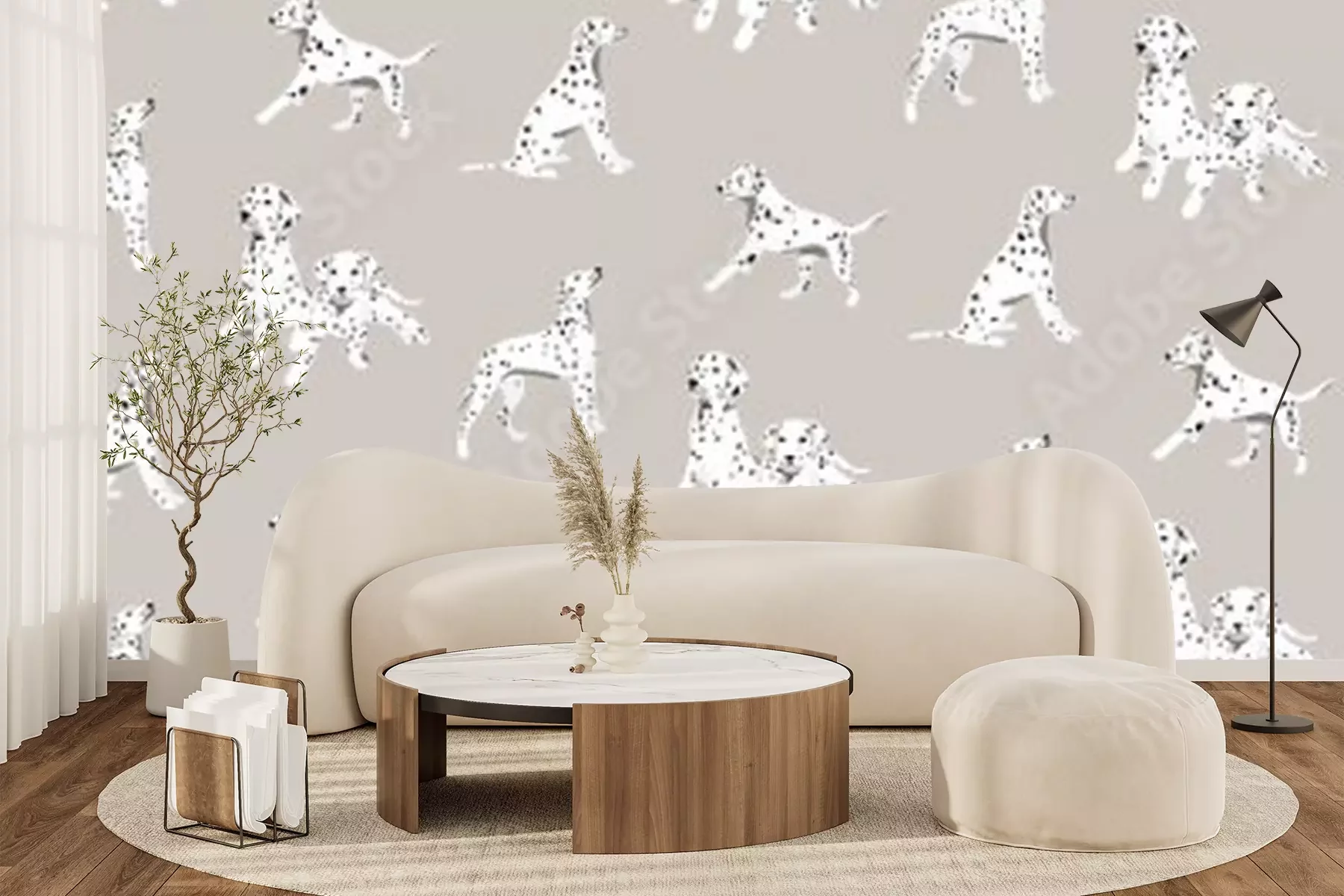 Fotobehang Patroon met Dalmatiërs op een beige achtergrond