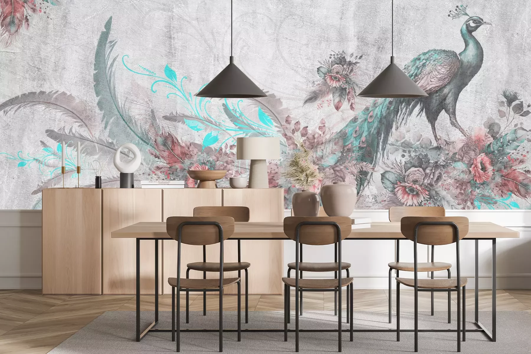 Het materiaal Premium+ is een gestructureerd vinyl op vlies met een gewicht van 255 g/m², dat kleine oneffenheden in de muur effectief camoufleert. De subtiele structuur van fijn zand geeft het oppervlak een exclusieve uitstraling, terwijl de halfmatte afwerking de diepte van de kleuren benadrukt. Het materiaal is dampdoorlatend, waardoor het ook in de keuken en badkamer kan worden gebruikt. De maximale breedte van één baan bedraagt 100 cm – bij grotere afmetingen wordt het fotobehang in meerdere gelijke banen verdeeld. De lijm wordt direct op de muur aangebracht en het behang wordt rand-aan-rand geplakt, wat zorgt voor een esthetisch resultaat zonder zichtbare naden. Het oppervlak kan gemakkelijk worden schoongemaakt door het voorzichtig af te nemen met een vochtige doek.