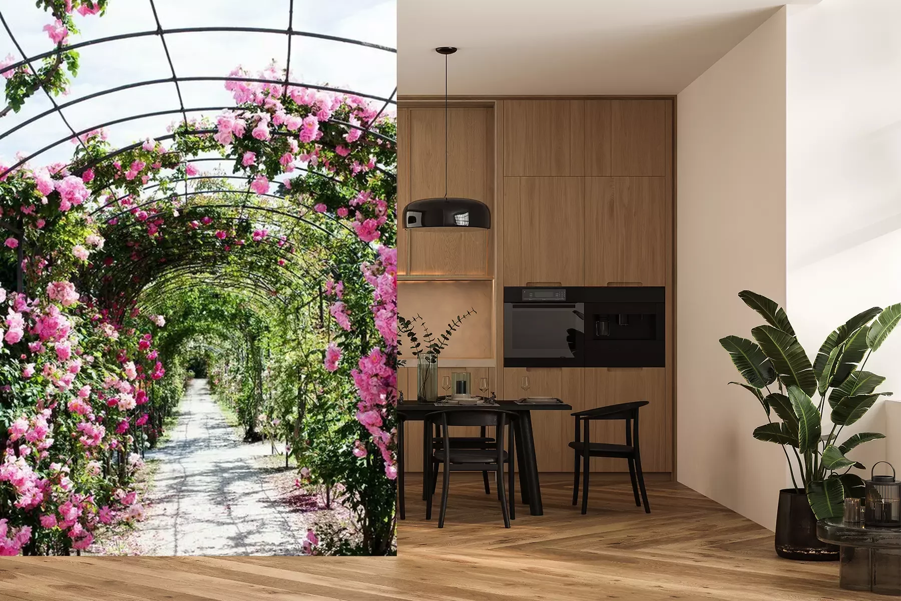 Het materiaal Premium is een glad vinyl op vlies, dat bestand is tegen uitrekken en vervorming. Het is dampdoorlatend – de muren kunnen vrij ademen – waardoor het geschikt is voor gebruik in de keuken en badkamer. Bij vervuiling kan het materiaal worden afgenomen met een vochtige doek. De maximale breedte van één baan bedraagt 95 of 105 cm, afhankelijk van de beschikbaarheid. Montage vindt plaats met de rand-aan-rand methode, wat een esthetisch resultaat zonder zichtbare naden oplevert. Omdat de lijm rechtstreeks op de muur wordt aangebracht, verloopt de installatie van het fotobehang snel en eenvoudig.