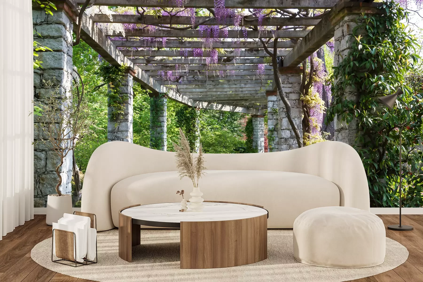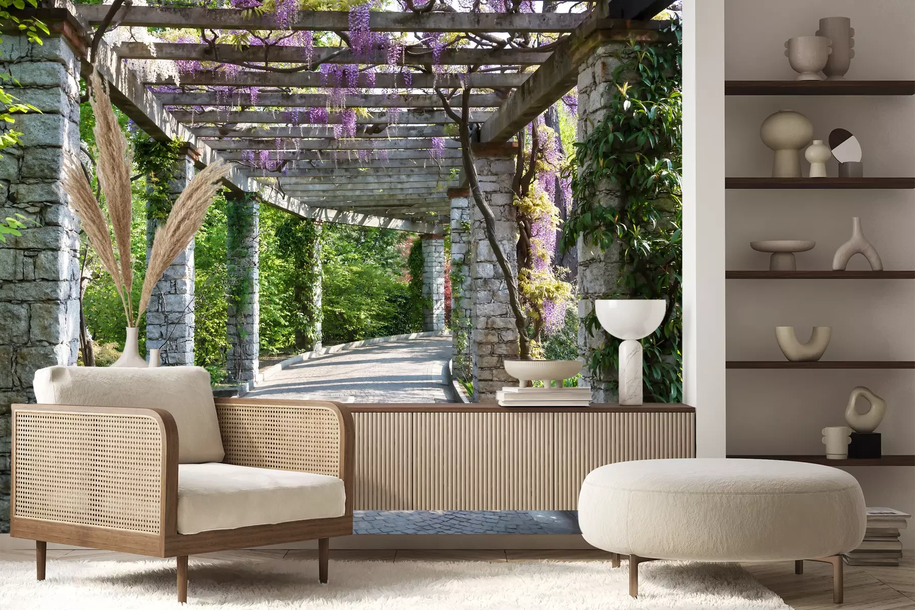 Het materiaal Premium+ is een gestructureerd vinyl op vlies met een gewicht van 255 g/m², dat kleine oneffenheden in de muur effectief camoufleert. De subtiele structuur van fijn zand geeft het oppervlak een exclusieve uitstraling, terwijl de halfmatte afwerking de diepte van de kleuren benadrukt. Het materiaal is dampdoorlatend, waardoor het ook in de keuken en badkamer kan worden gebruikt. De maximale breedte van één baan bedraagt 100 cm – bij grotere afmetingen wordt het fotobehang in meerdere gelijke banen verdeeld. De lijm wordt direct op de muur aangebracht en het behang wordt rand-aan-rand geplakt, wat zorgt voor een esthetisch resultaat zonder zichtbare naden. Het oppervlak kan gemakkelijk worden schoongemaakt door het voorzichtig af te nemen met een vochtige doek.