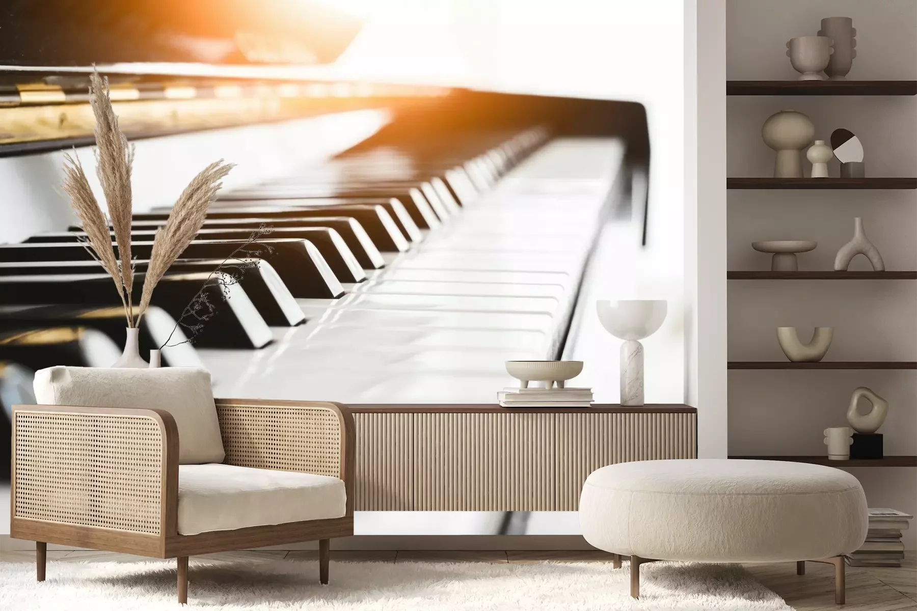 Het materiaal Premium+ is een gestructureerd vinyl op vlies met een gewicht van 255 g/m², dat kleine oneffenheden in de muur effectief camoufleert. De subtiele structuur van fijn zand geeft het oppervlak een exclusieve uitstraling, terwijl de halfmatte afwerking de diepte van de kleuren benadrukt. Het materiaal is dampdoorlatend, waardoor het ook in de keuken en badkamer kan worden gebruikt. De maximale breedte van één baan bedraagt 100 cm – bij grotere afmetingen wordt het fotobehang in meerdere gelijke banen verdeeld. De lijm wordt direct op de muur aangebracht en het behang wordt rand-aan-rand geplakt, wat zorgt voor een esthetisch resultaat zonder zichtbare naden. Het oppervlak kan gemakkelijk worden schoongemaakt door het voorzichtig af te nemen met een vochtige doek.