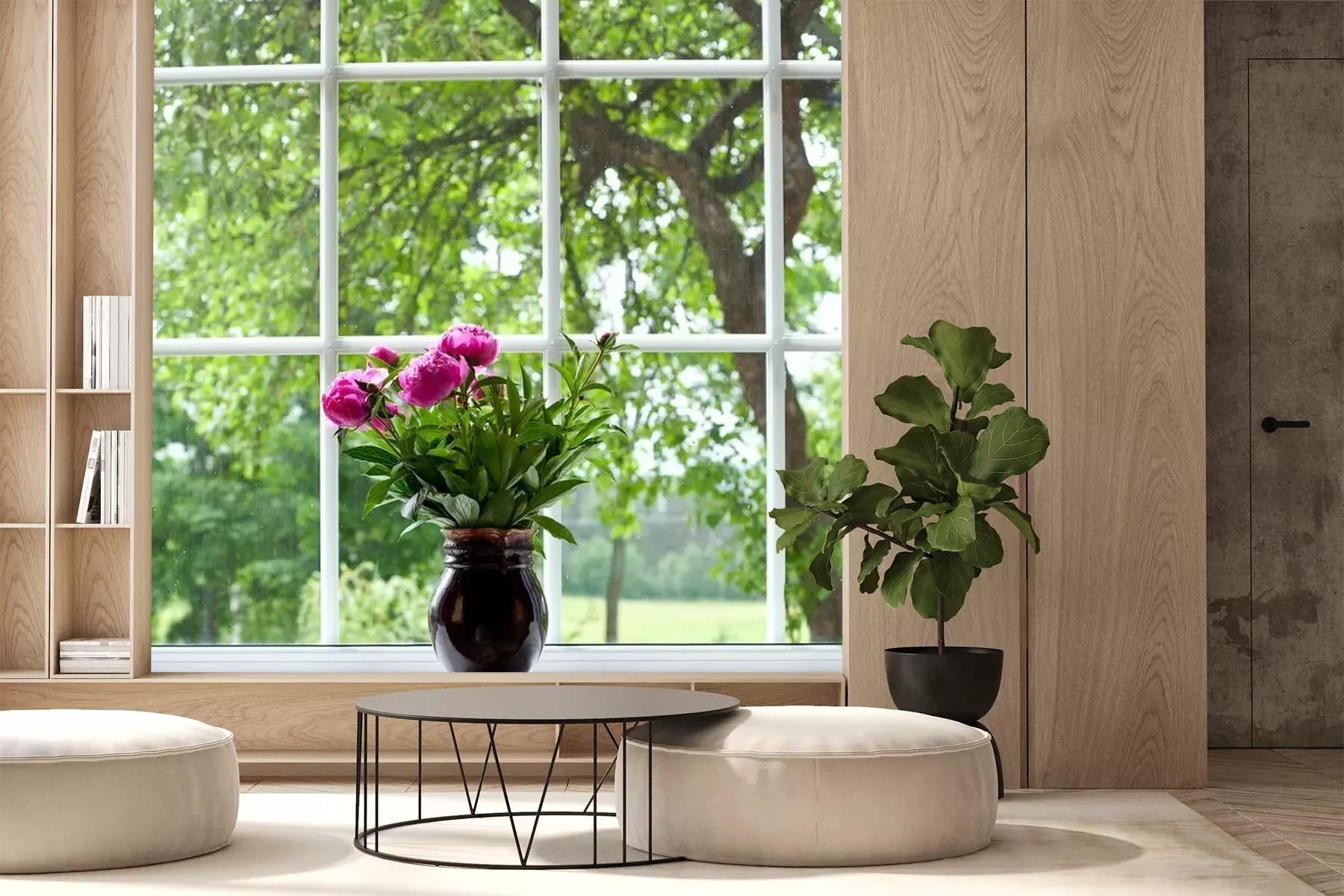 Pioen bloemen op widnow-dorpelProbleemloze bezorging verzorgd door vertrouwde vervoerders