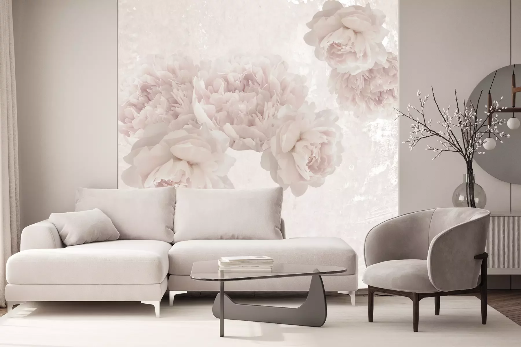 Het materiaal Premium+ is een gestructureerd vinyl op vlies met een gewicht van 255 g/m², dat kleine oneffenheden in de muur effectief camoufleert. De subtiele structuur van fijn zand geeft het oppervlak een exclusieve uitstraling, terwijl de halfmatte afwerking de diepte van de kleuren benadrukt. Het materiaal is dampdoorlatend, waardoor het ook in de keuken en badkamer kan worden gebruikt. De maximale breedte van één baan bedraagt 100 cm – bij grotere afmetingen wordt het fotobehang in meerdere gelijke banen verdeeld. De lijm wordt direct op de muur aangebracht en het behang wordt rand-aan-rand geplakt, wat zorgt voor een esthetisch resultaat zonder zichtbare naden. Het oppervlak kan gemakkelijk worden schoongemaakt door het voorzichtig af te nemen met een vochtige doek.