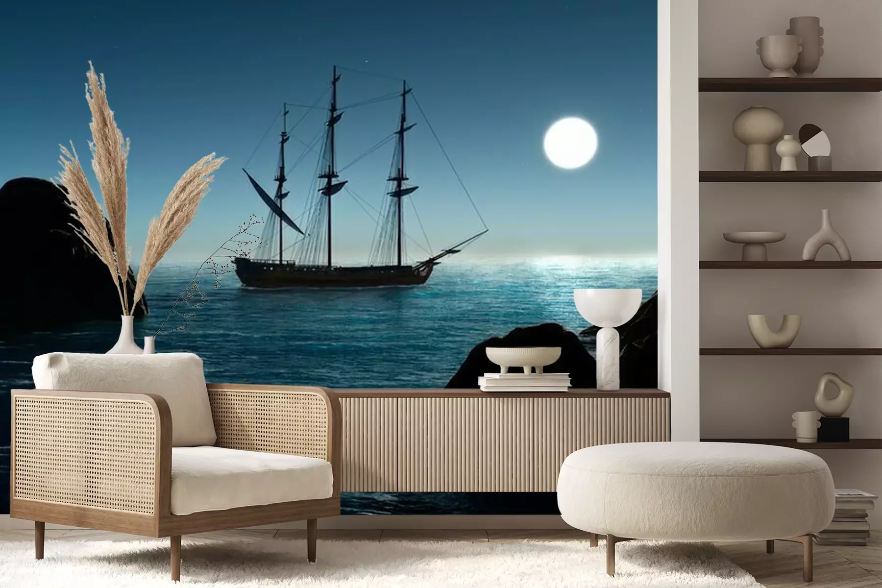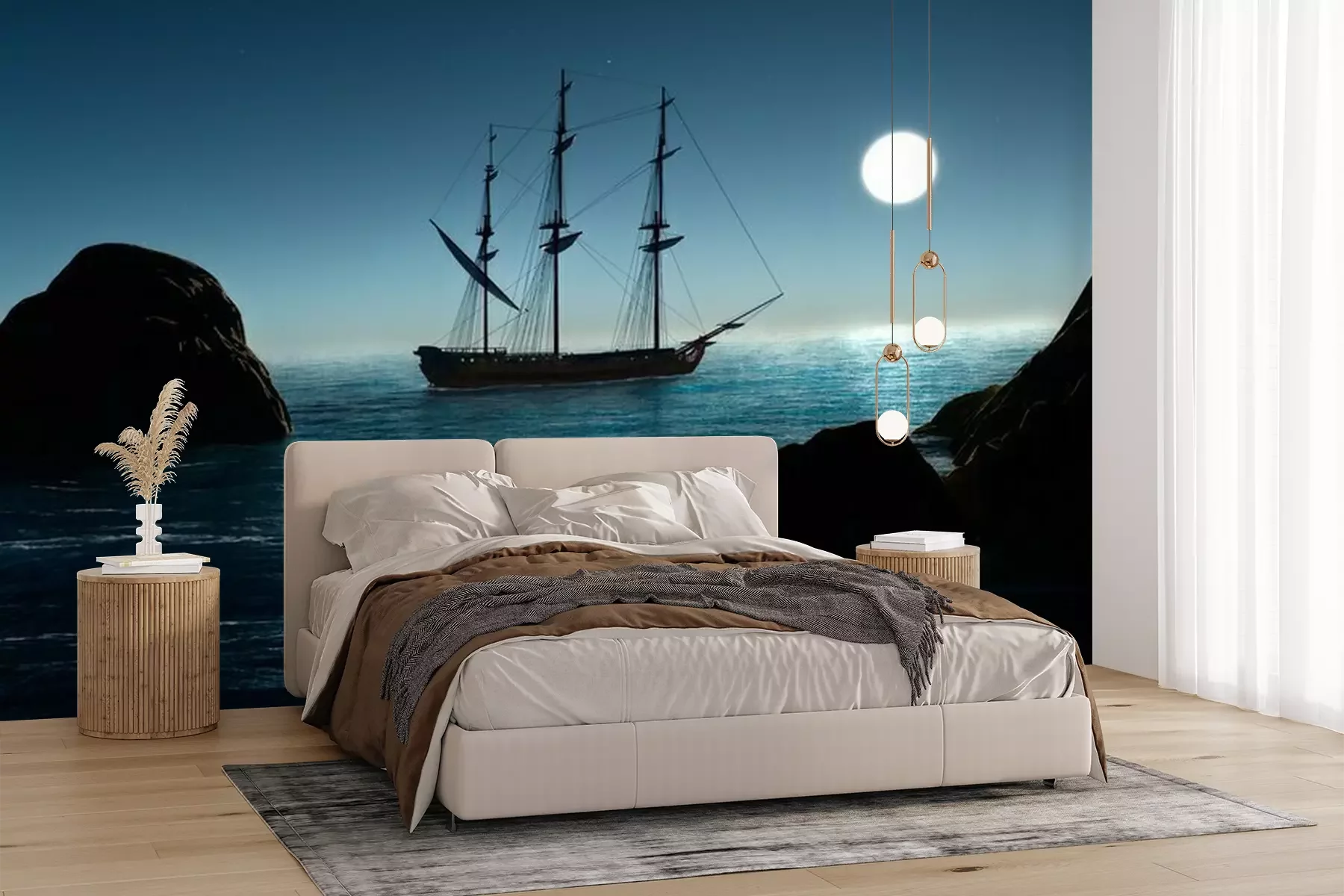 Het materiaal Premium+ is een gestructureerd vinyl op vlies met een gewicht van 255 g/m², dat kleine oneffenheden in de muur effectief camoufleert. De subtiele structuur van fijn zand geeft het oppervlak een exclusieve uitstraling, terwijl de halfmatte afwerking de diepte van de kleuren benadrukt. Het materiaal is dampdoorlatend, waardoor het ook in de keuken en badkamer kan worden gebruikt. De maximale breedte van één baan bedraagt 100 cm – bij grotere afmetingen wordt het fotobehang in meerdere gelijke banen verdeeld. De lijm wordt direct op de muur aangebracht en het behang wordt rand-aan-rand geplakt, wat zorgt voor een esthetisch resultaat zonder zichtbare naden. Het oppervlak kan gemakkelijk worden schoongemaakt door het voorzichtig af te nemen met een vochtige doek.