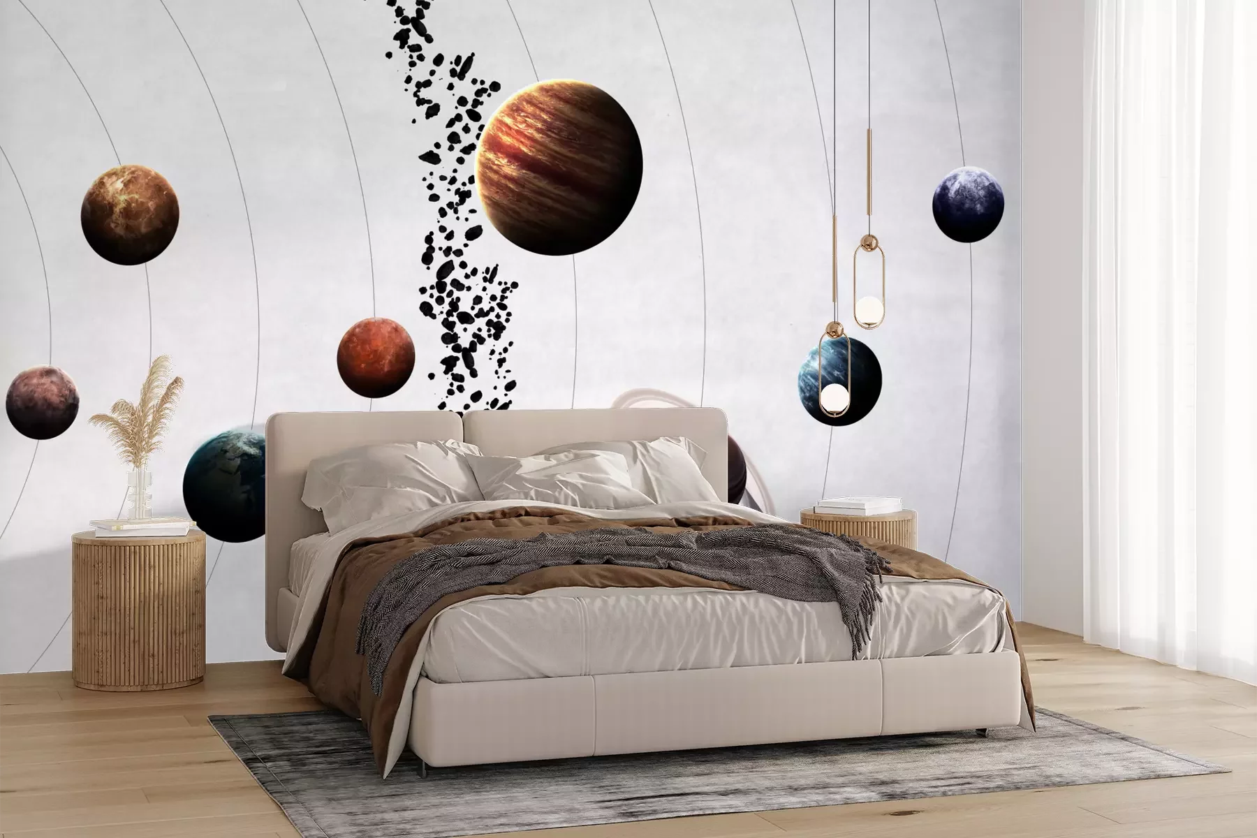 Het fotobehang wordt geleverd in banen. De afmetingen en het aantal banen waaruit het volledige fotobehang bestaat, zijn afhankelijk van het gekozen materiaal. Wanneer het formaat de maximale materiaalbreedte overschrijdt, bestaat de print uit meerdere gelijkmatige banen.