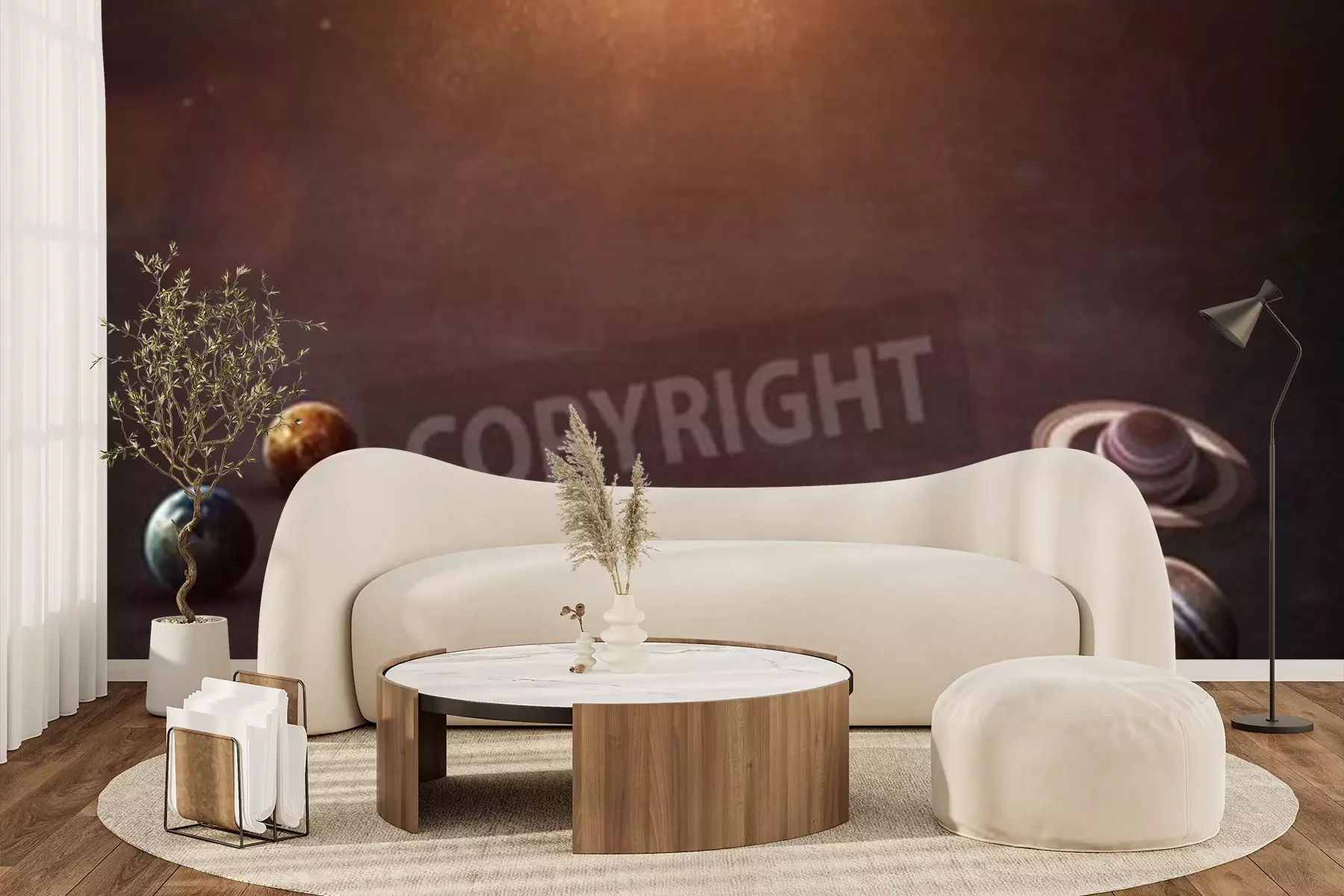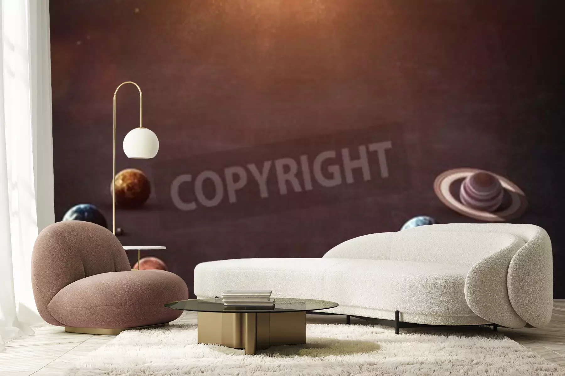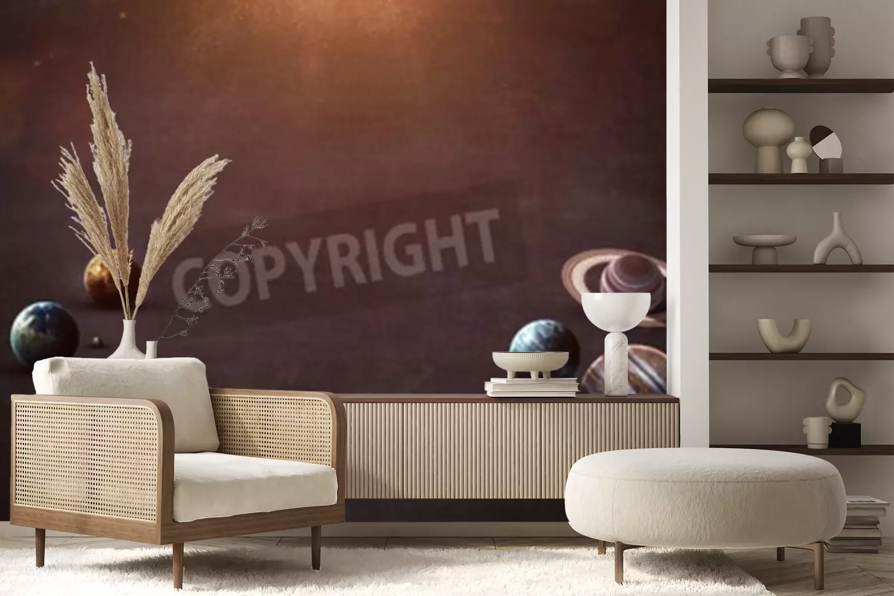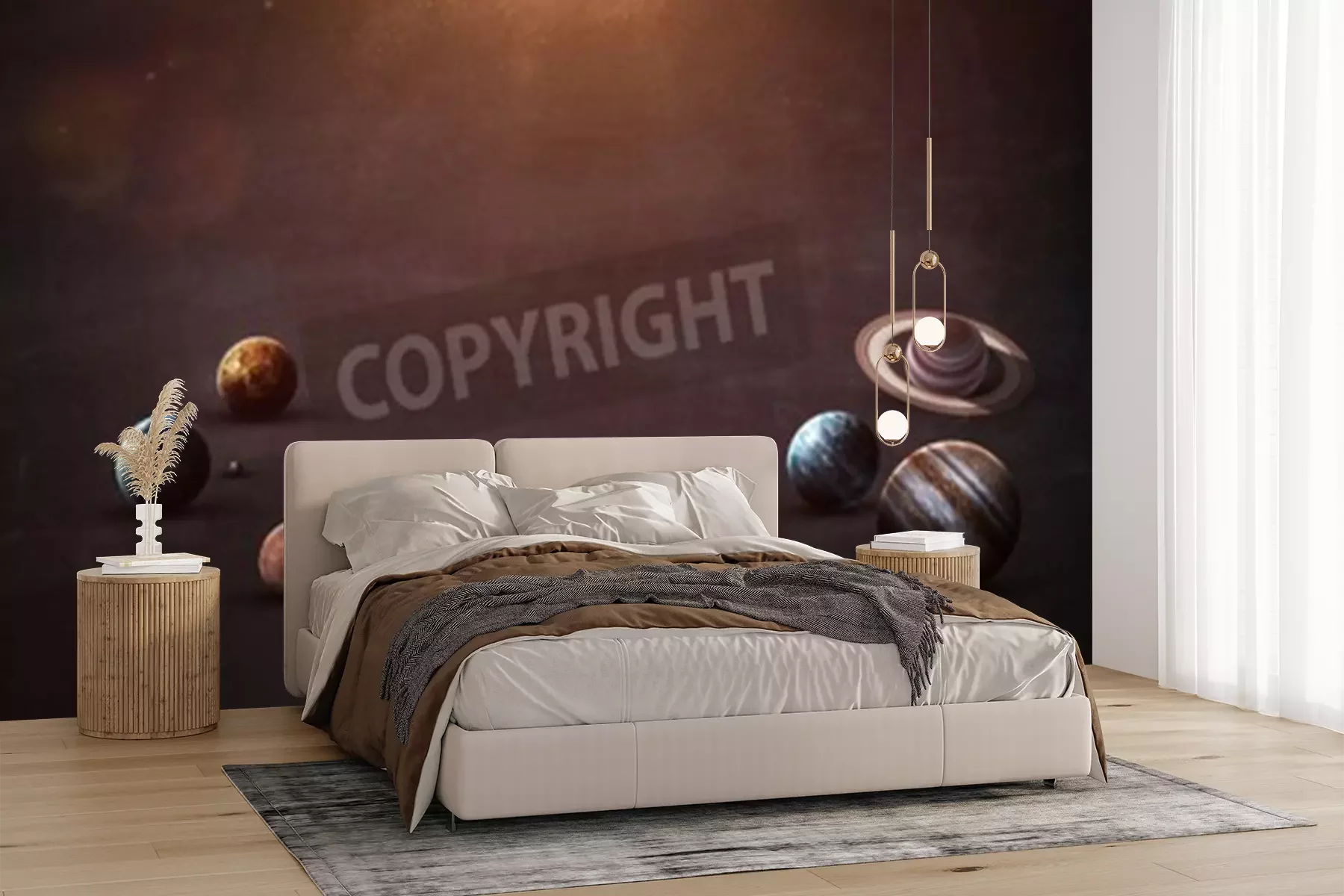 Fotobehang Planeten van het zonnestelsel op een bruine achtergrond