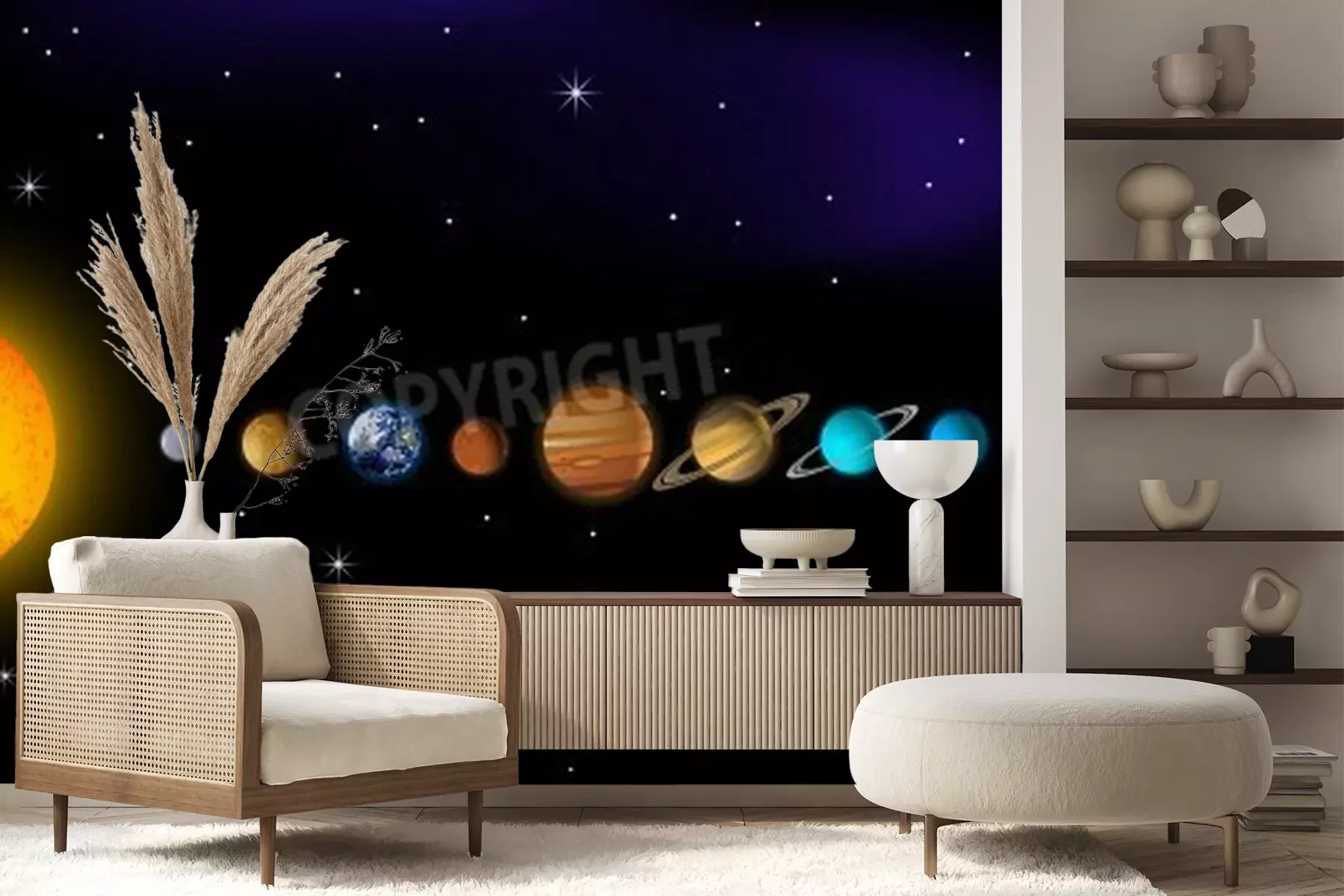 Fotobehang Planeten van het zonnestelsel op een lijn