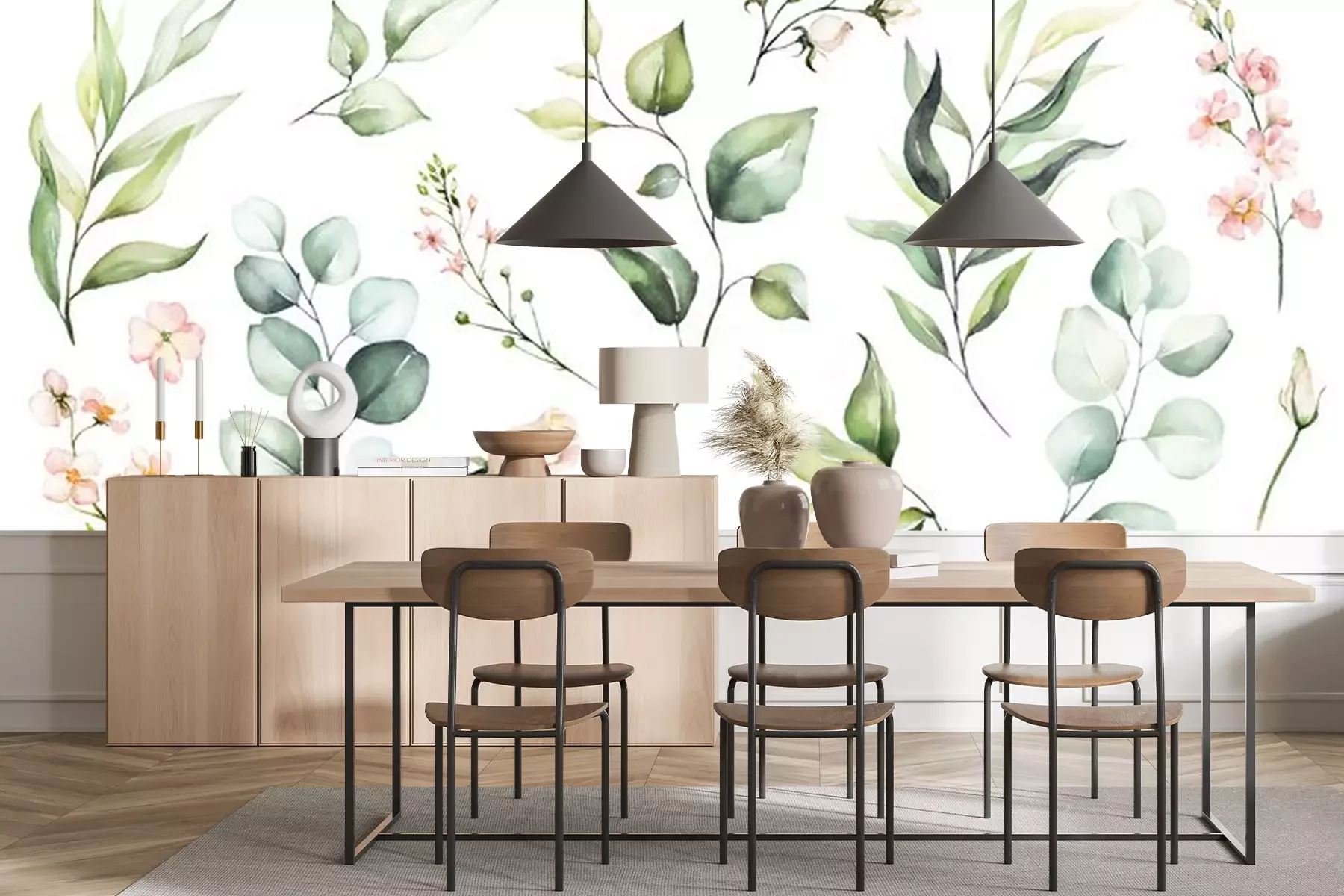 Fotobehang Planten geschilderd in aquarel