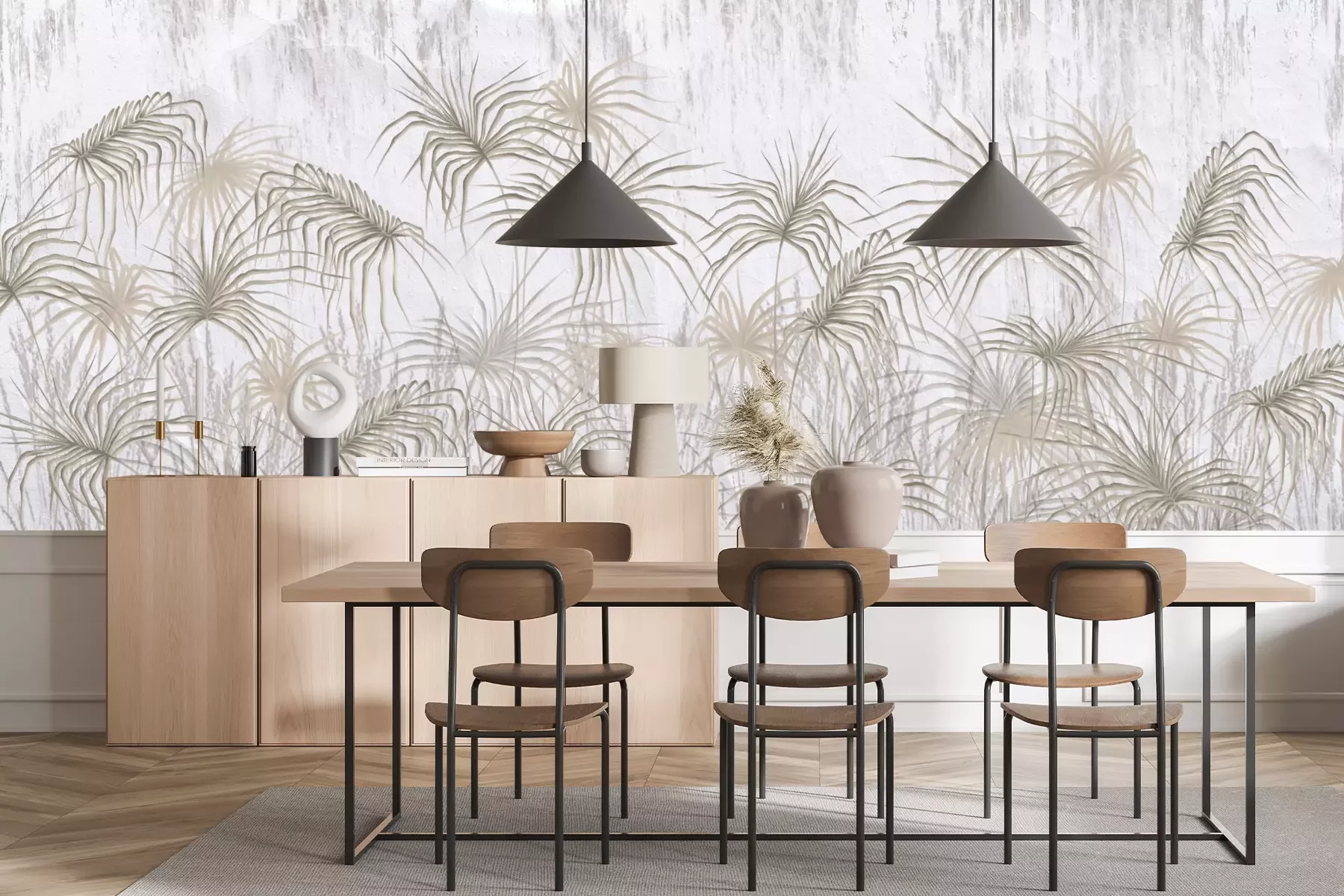 Het materiaal Standard is een hoogwaardig latexmateriaal met een glad, mat oppervlak. Dankzij de HP Latex-printtechnologie zijn de kleuren intens, duurzaam en UV-bestendig, waardoor het patroon jarenlang een onberispelijke uitstraling behoudt. Vervuilde oppervlakken kunnen voorzichtig worden afgeveegd met een droge doek. De maximale breedte van één baan bedraagt 95 cm of 105 cm – afhankelijk van de bestelde fotobehangbreedte. Bij grotere afmetingen wordt het patroon verdeeld over meerdere gelijkmatige banen. Het fotobehang wordt rand-aan-randaangebracht, wat vrijwel onzichtbare naden mogelijk maakt.