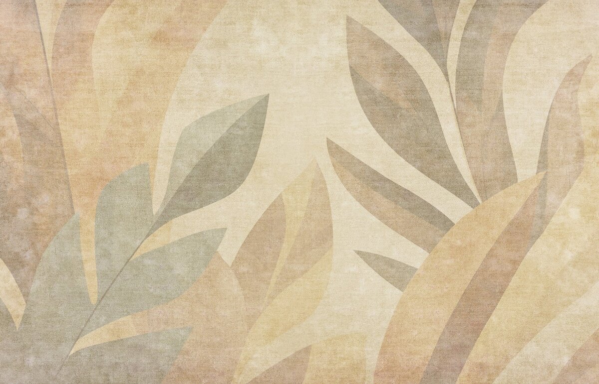 Fotobehang: Plantenpatroon van bladeren op een gestructureerde achtergrond