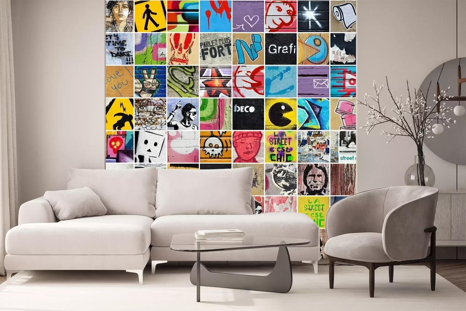 Het materiaal Standard is een hoogwaardig latexmateriaal met een glad, mat oppervlak. Dankzij de HP Latex-printtechnologie zijn de kleuren intens, duurzaam en UV-bestendig, waardoor het patroon jarenlang een onberispelijke uitstraling behoudt. Vervuilde oppervlakken kunnen voorzichtig worden afgeveegd met een droge doek. De maximale breedte van één baan bedraagt 95 cm of 105 cm – afhankelijk van de bestelde fotobehangbreedte. Bij grotere afmetingen wordt het patroon verdeeld over meerdere gelijkmatige banen. Het fotobehang wordt rand-aan-randaangebracht, wat vrijwel onzichtbare naden mogelijk maakt.