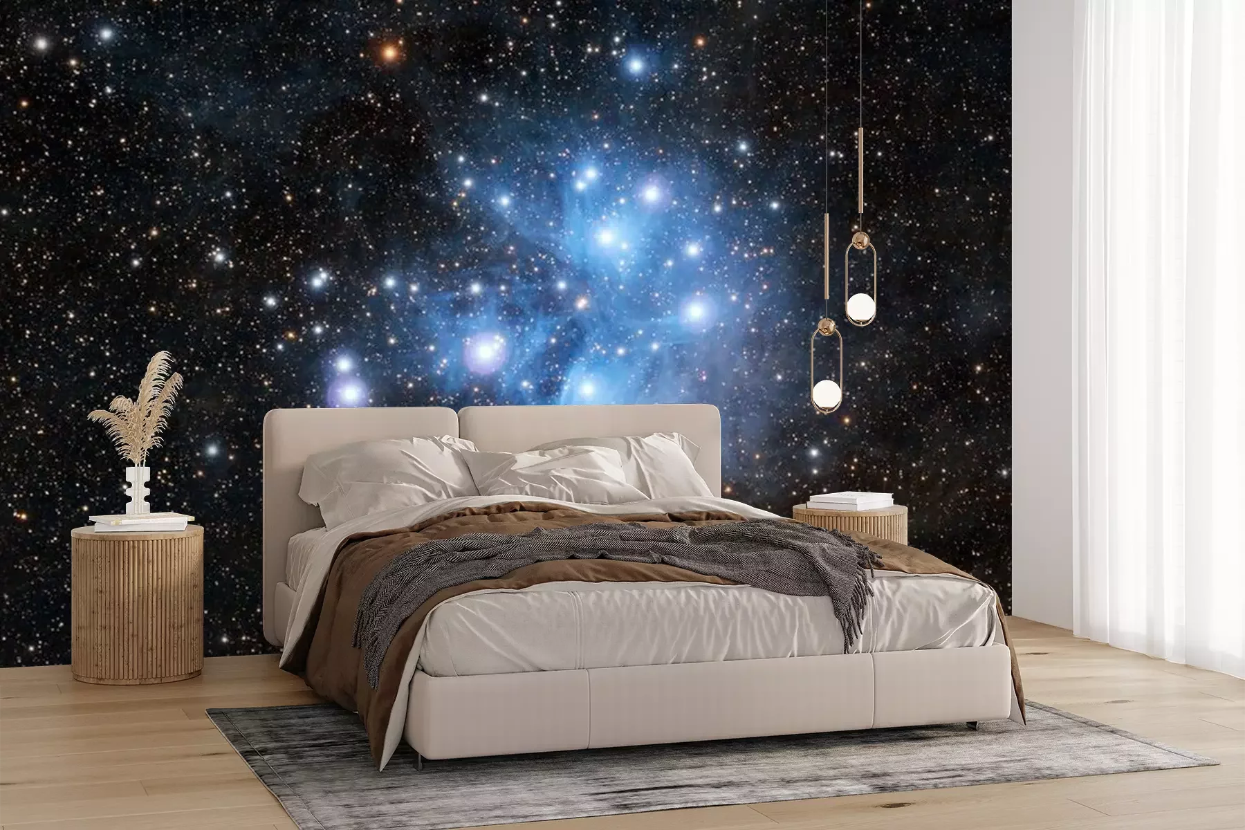 Het materiaal Premium+ is een gestructureerd vinyl op vlies met een gewicht van 255 g/m², dat kleine oneffenheden in de muur effectief camoufleert. De subtiele structuur van fijn zand geeft het oppervlak een exclusieve uitstraling, terwijl de halfmatte afwerking de diepte van de kleuren benadrukt. Het materiaal is dampdoorlatend, waardoor het ook in de keuken en badkamer kan worden gebruikt. De maximale breedte van één baan bedraagt 100 cm – bij grotere afmetingen wordt het fotobehang in meerdere gelijke banen verdeeld. De lijm wordt direct op de muur aangebracht en het behang wordt rand-aan-rand geplakt, wat zorgt voor een esthetisch resultaat zonder zichtbare naden. Het oppervlak kan gemakkelijk worden schoongemaakt door het voorzichtig af te nemen met een vochtige doek.