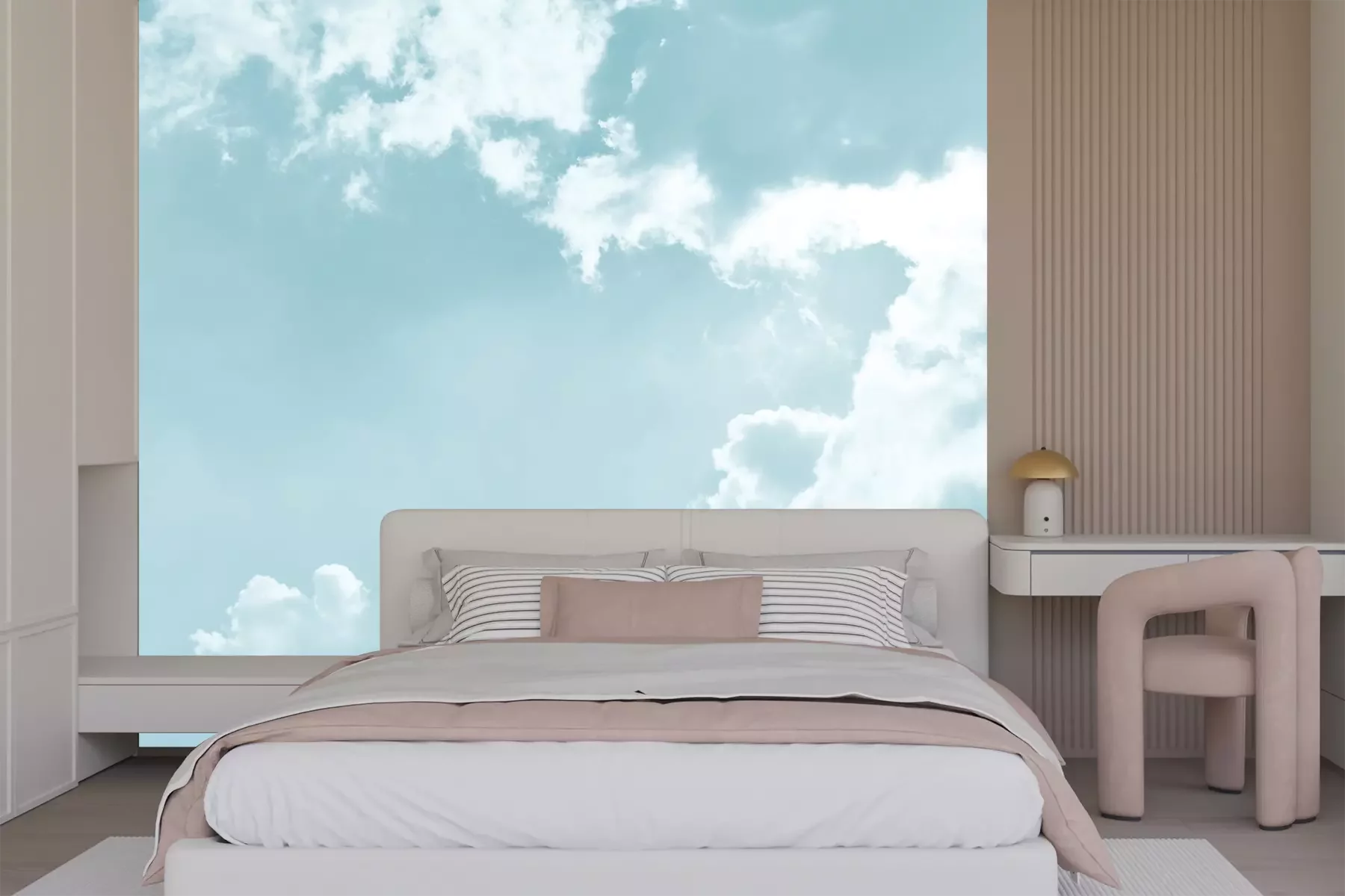 Het materiaal Premium+ is een gestructureerd vinyl op vlies met een gewicht van 255 g/m², dat kleine oneffenheden in de muur effectief camoufleert. De subtiele structuur van fijn zand geeft het oppervlak een exclusieve uitstraling, terwijl de halfmatte afwerking de diepte van de kleuren benadrukt. Het materiaal is dampdoorlatend, waardoor het ook in de keuken en badkamer kan worden gebruikt. De maximale breedte van één baan bedraagt 100 cm – bij grotere afmetingen wordt het fotobehang in meerdere gelijke banen verdeeld. De lijm wordt direct op de muur aangebracht en het behang wordt rand-aan-rand geplakt, wat zorgt voor een esthetisch resultaat zonder zichtbare naden. Het oppervlak kan gemakkelijk worden schoongemaakt door het voorzichtig af te nemen met een vochtige doek.
