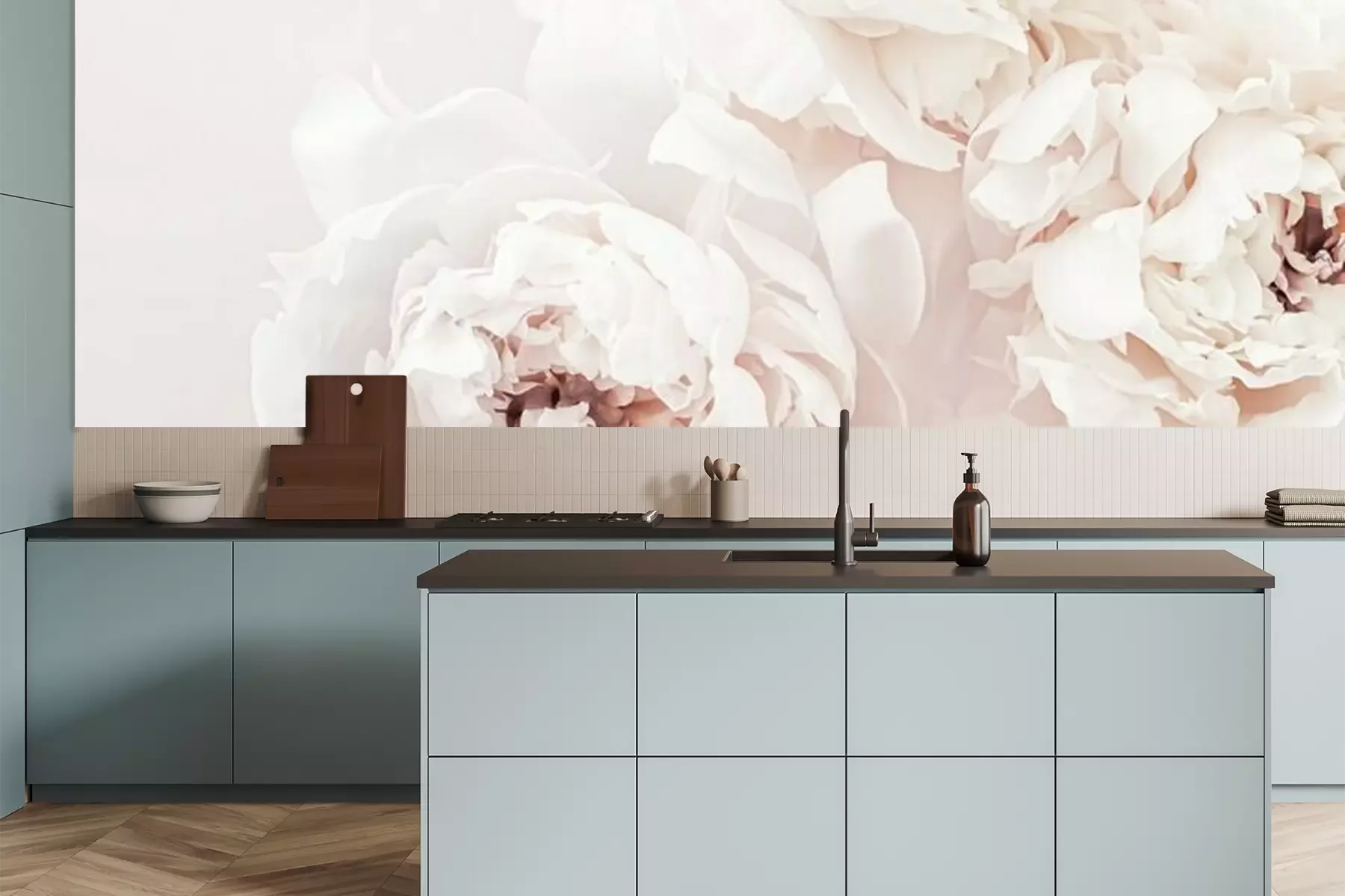 Het materiaal Premium is een glad vinyl op vlies, dat bestand is tegen uitrekken en vervorming. Het is dampdoorlatend – de muren kunnen vrij ademen – waardoor het geschikt is voor gebruik in de keuken en badkamer. Bij vervuiling kan het materiaal worden afgenomen met een vochtige doek. De maximale breedte van één baan bedraagt 95 of 105 cm, afhankelijk van de beschikbaarheid. Montage vindt plaats met de rand-aan-rand methode, wat een esthetisch resultaat zonder zichtbare naden oplevert. Omdat de lijm rechtstreeks op de muur wordt aangebracht, verloopt de installatie van het fotobehang snel en eenvoudig.